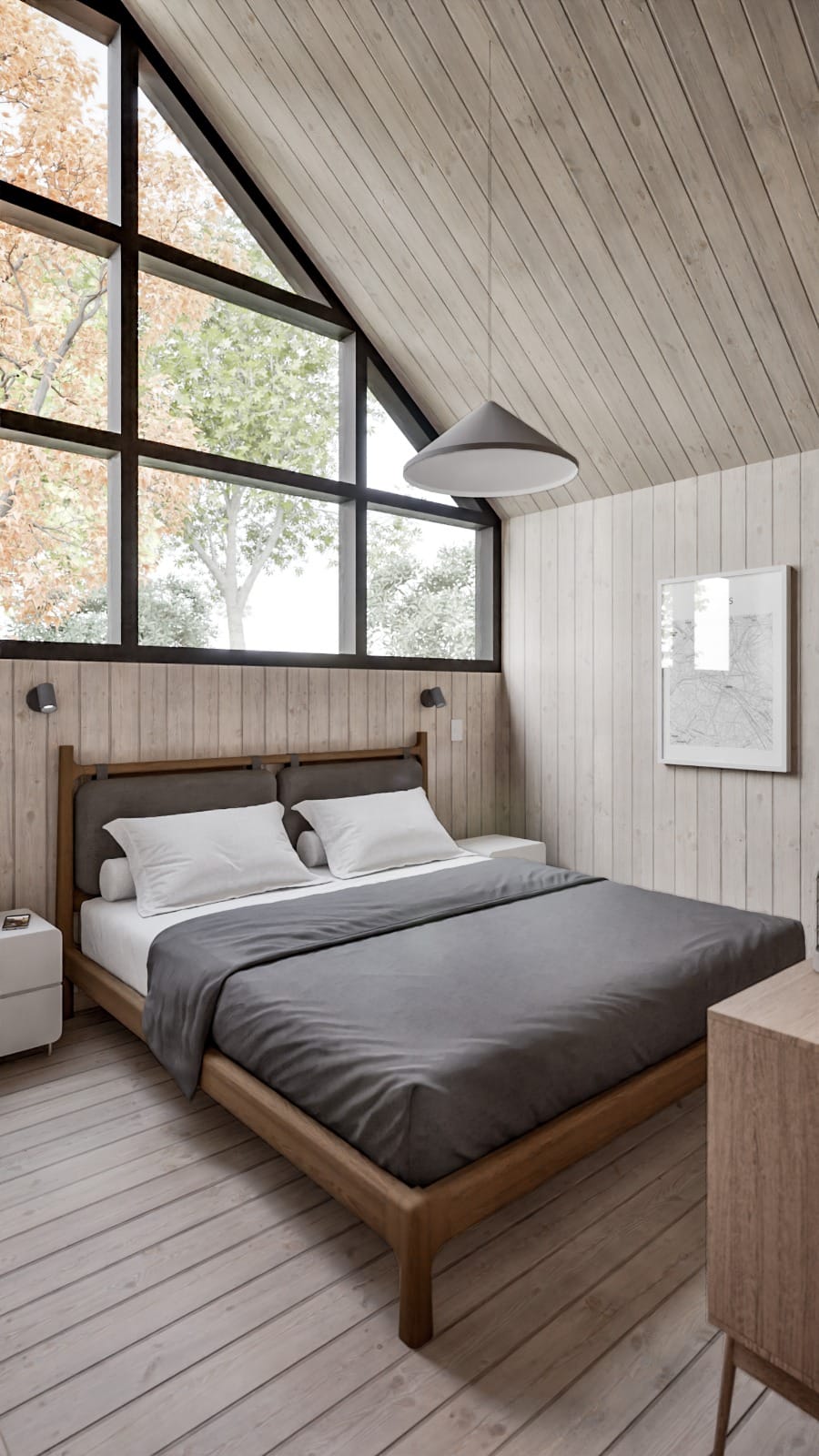- Terminación piso interior en pino (baño considera gres porcelánico)