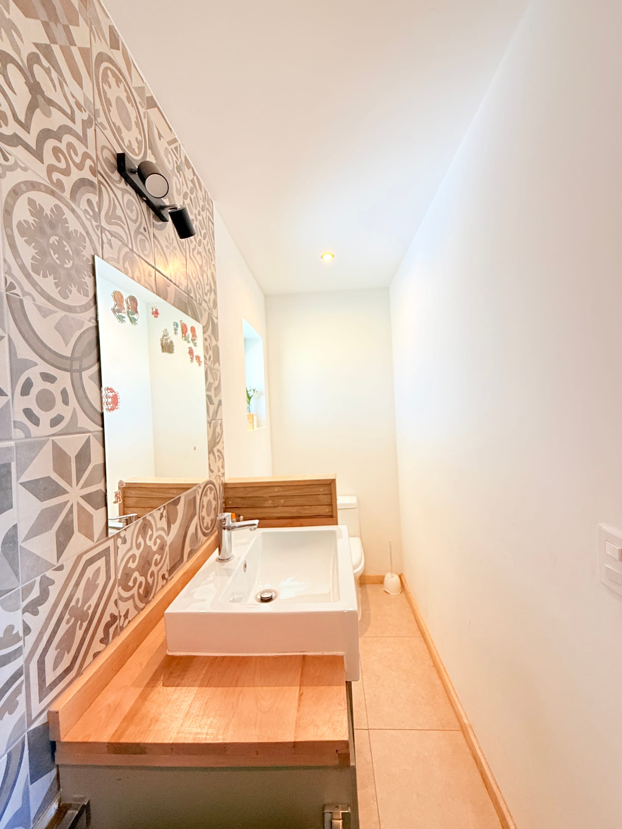 - También tiene un baño de visitas bastante cómodo y funcional.