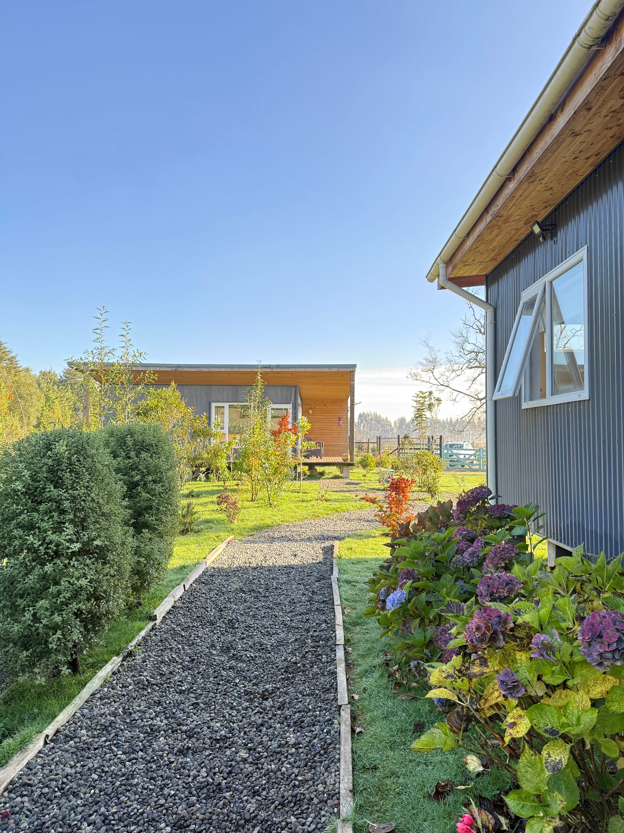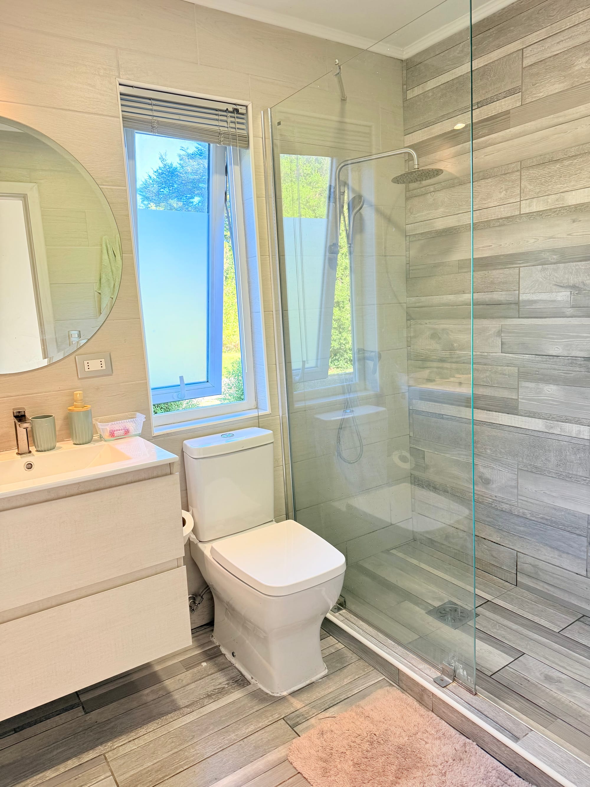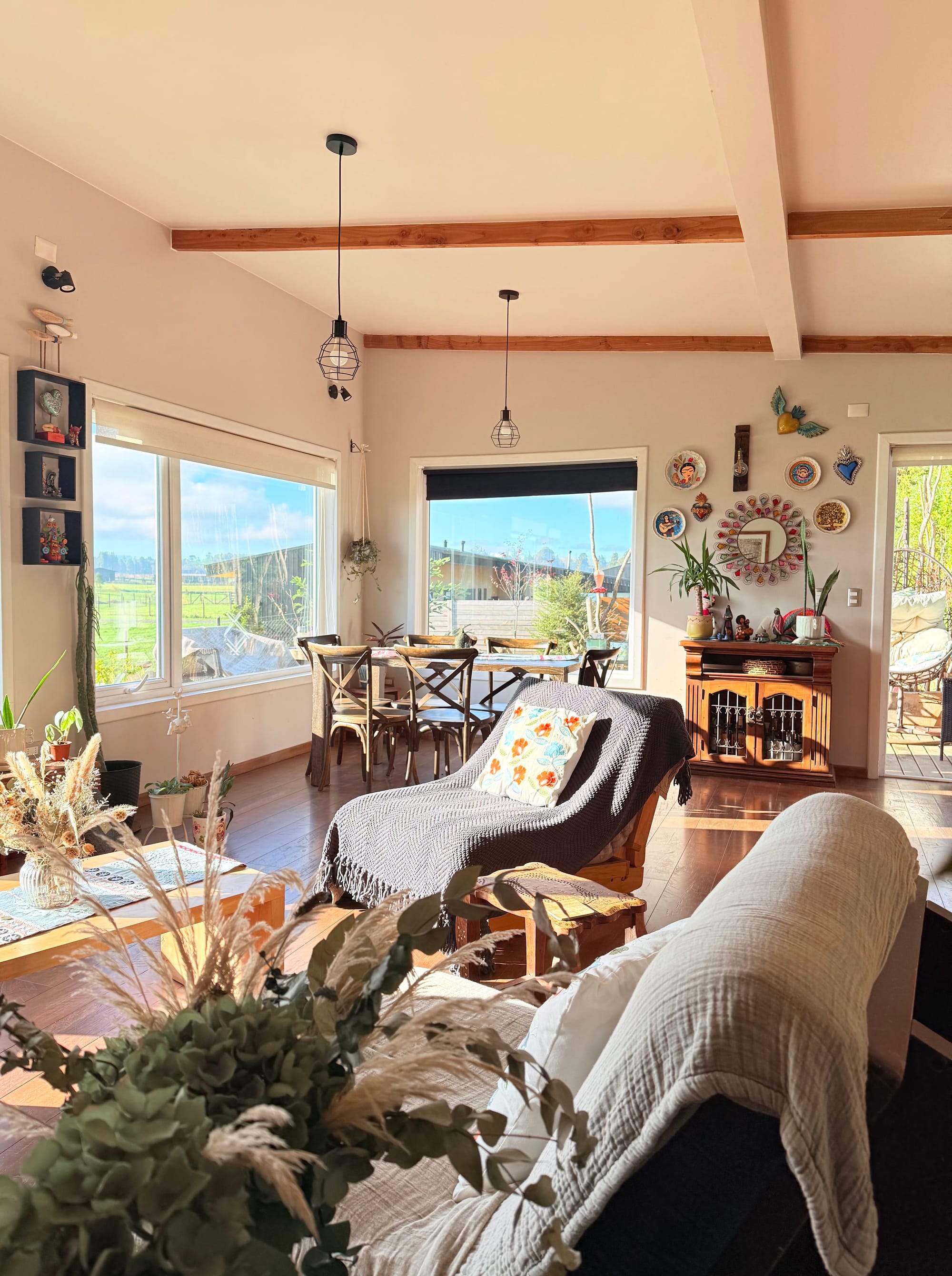 El terreno también posee una segunda construcción independiente que fue el primer espacio que habitaron los dueños al llegar a vivir al lugar. Hoy, es utilizado para recibir a las visitas y también se arrienda como Airbnb durante el año. Es perfecto si quieres tener un espacio para trabajar, entrenar o como sala de ensayo para tu banda. 🎶