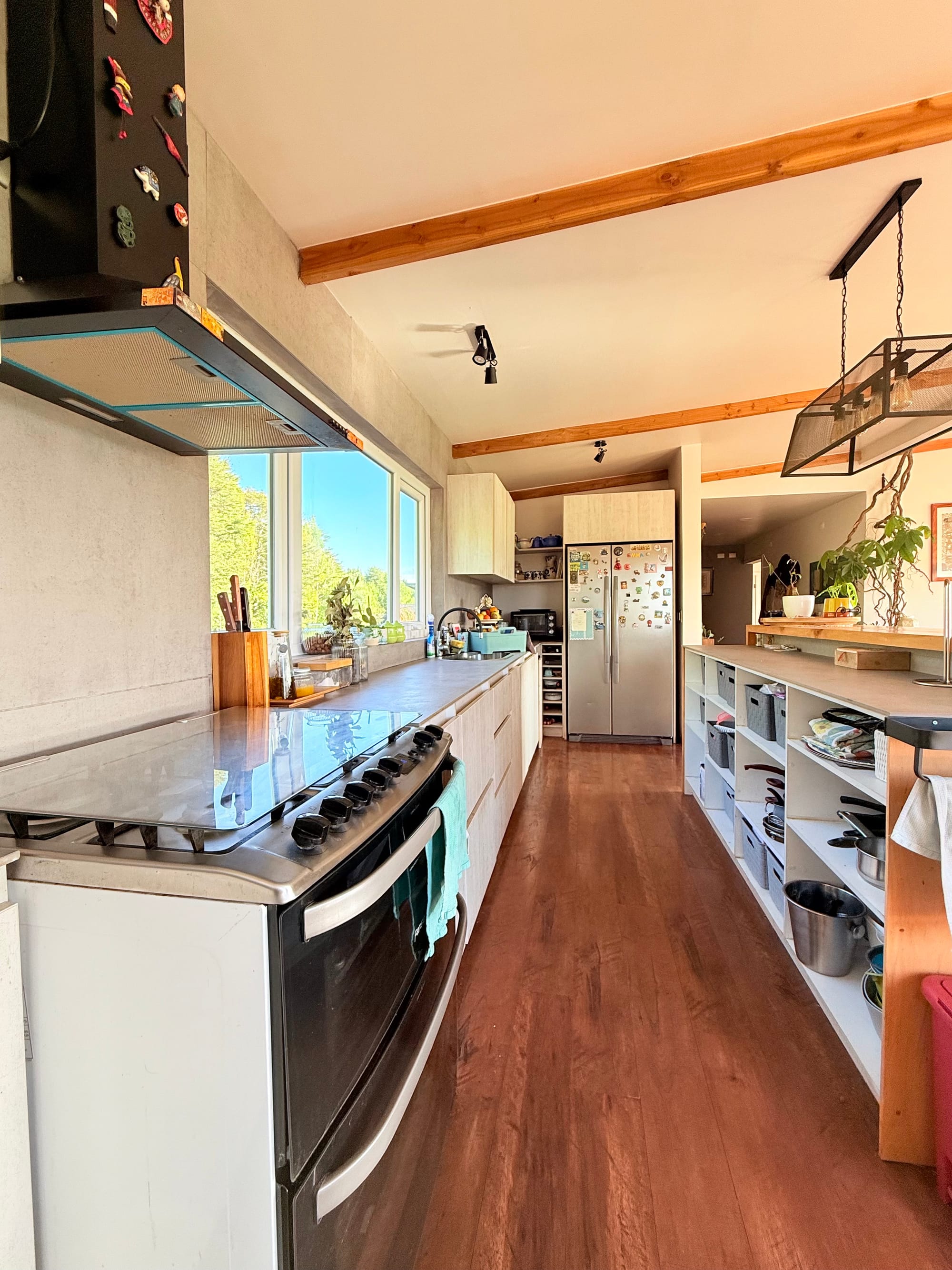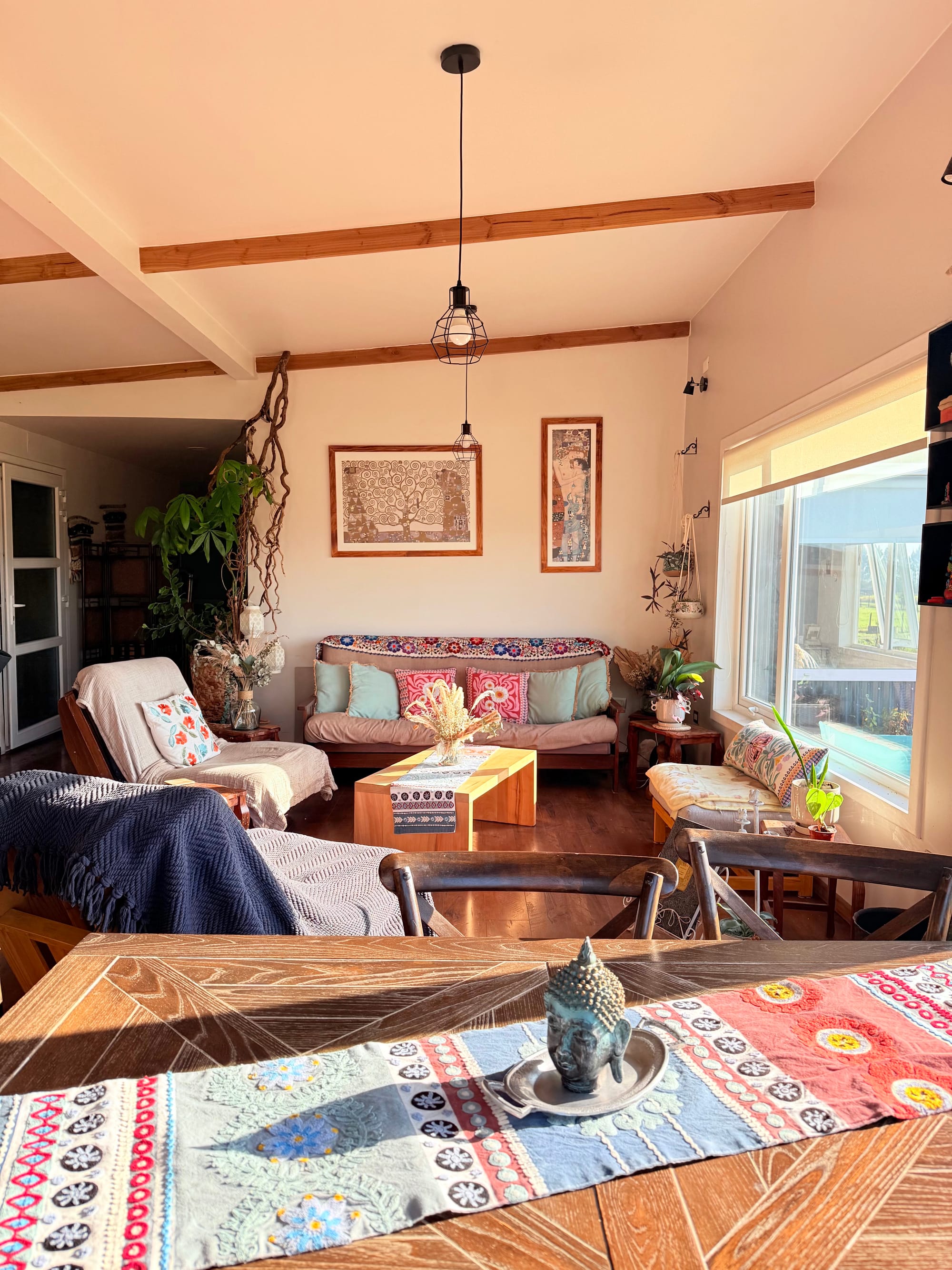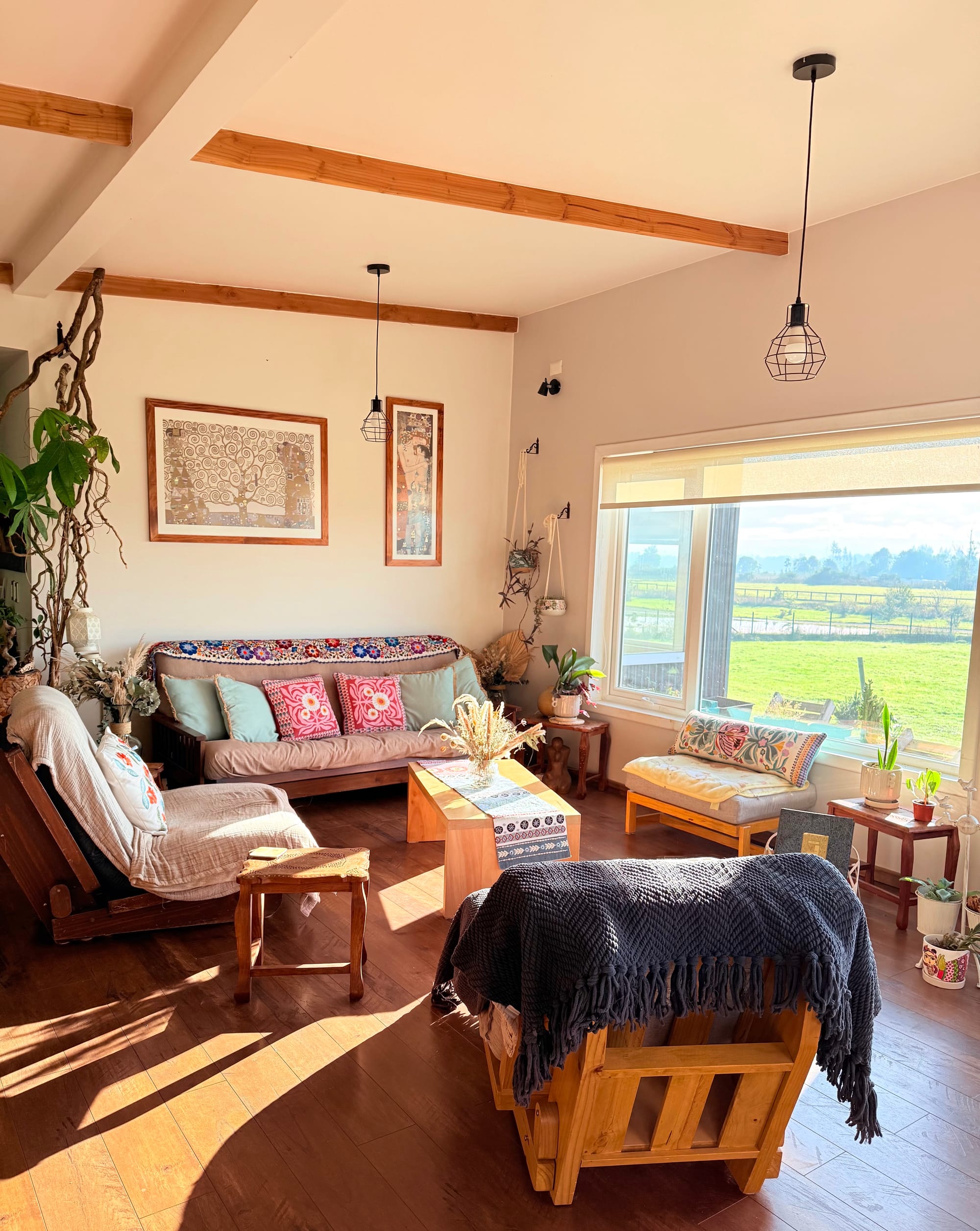 El terreno también posee una segunda construcción independiente que fue el primer espacio que habitaron los dueños al llegar a vivir al lugar. Hoy, es utilizado para recibir a las visitas y también se arrienda como Airbnb durante el año. Es perfecto si quieres tener un espacio para trabajar, entrenar o como sala de ensayo para tu banda. 🎶