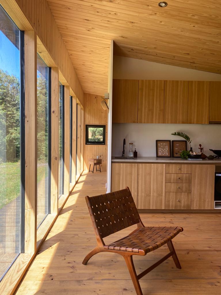 Esta hermosa casa se encuentra en Nueva Braunau, en la comuna de Puerto Varas. Fue comprada hace alrededor de seis años y lo que enamoró al dueño del lugar fue que "cuenta con árboles de más de 200 años, con especies como coigües, arrayanes y canelos y una hermosa cascada que en invierno fluye como desagüe del bosque. "