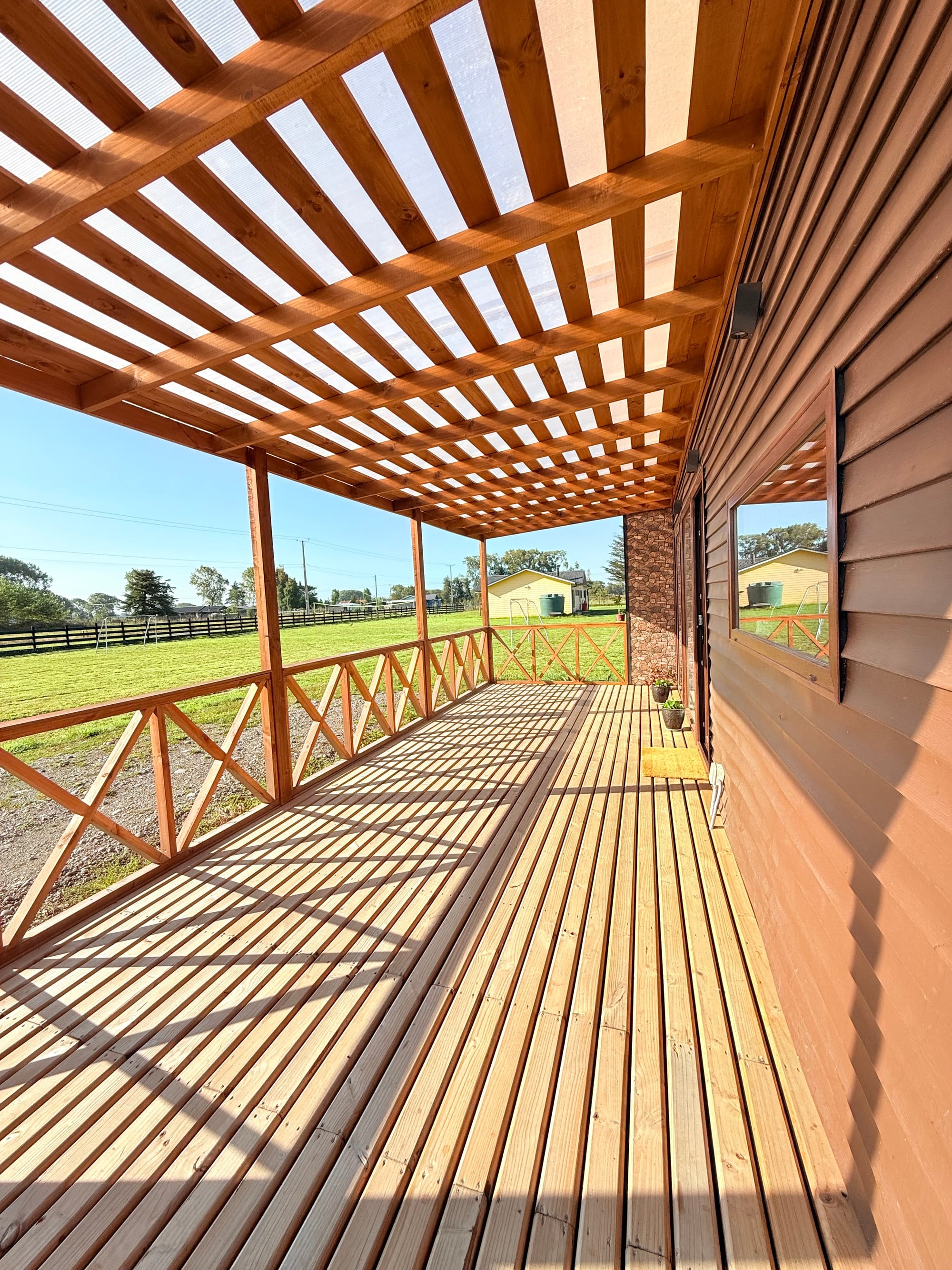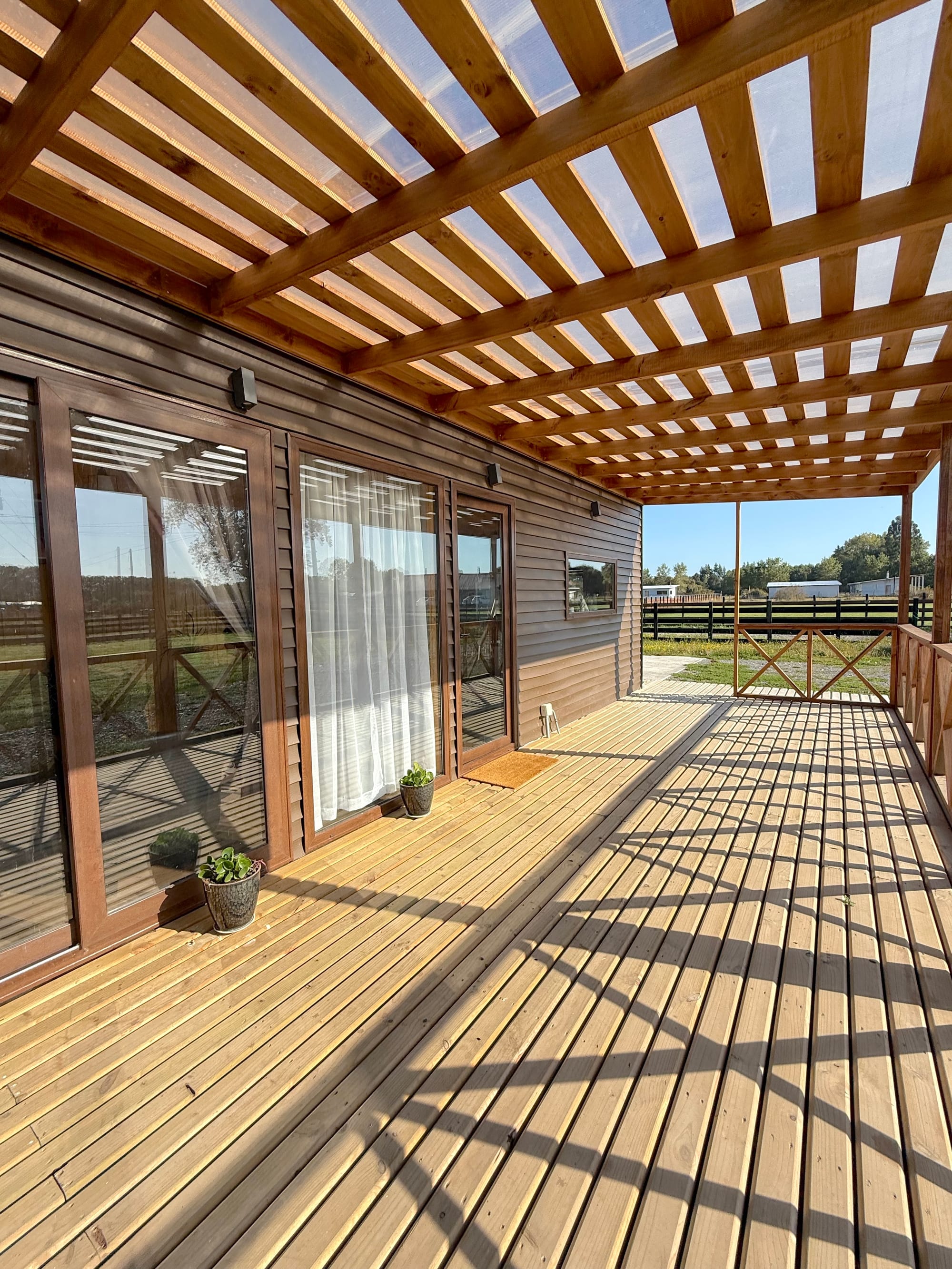 - Tiene una gran terraza techada que invita a disfrutar los días de sol y también, protegerse de la lluvia.