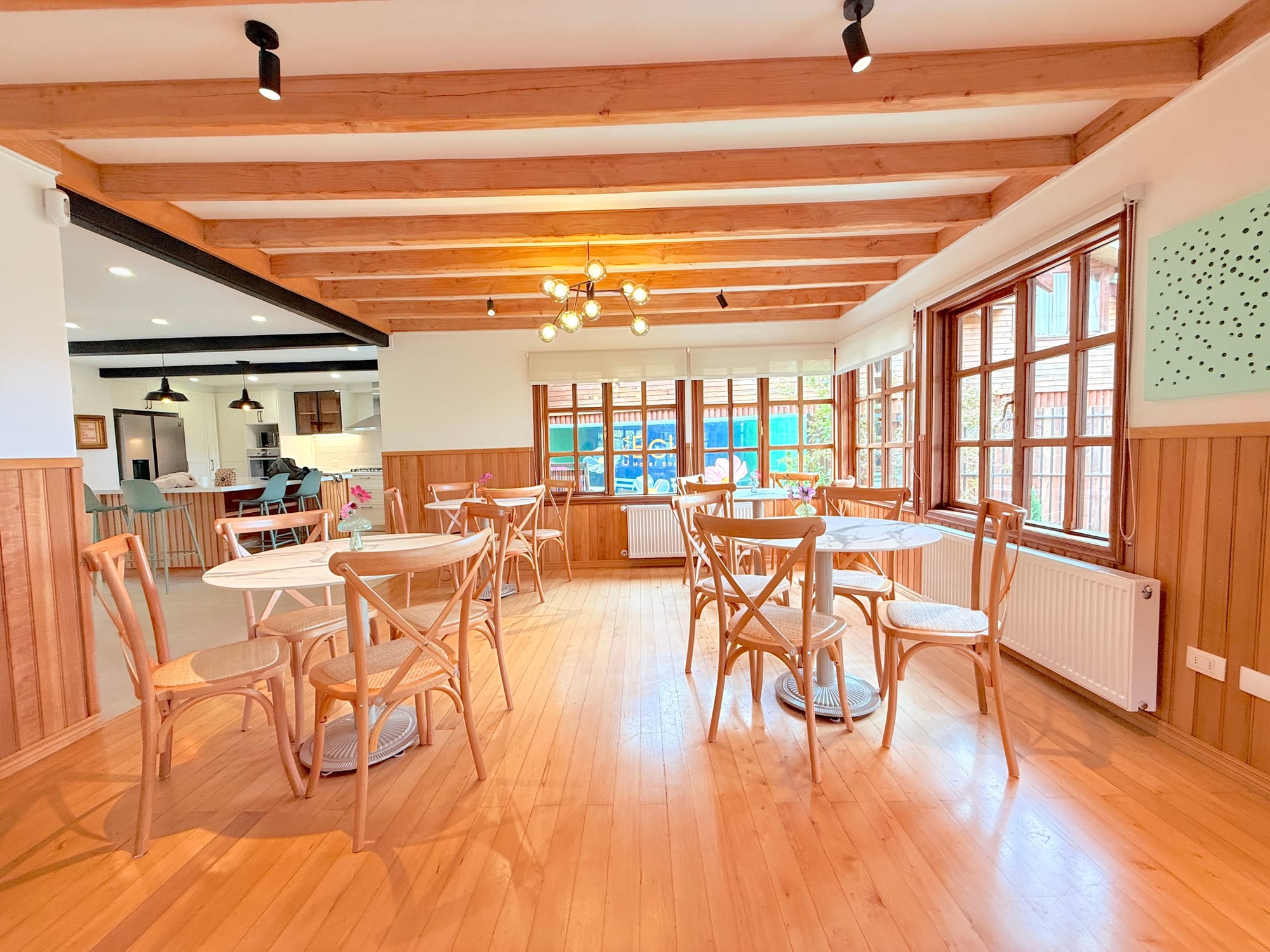 La ubicación también es parte importante, estamos cerca de la playa y del Teatro del Lago, lo que permite disfrutar a pie la ciudad. Mucha gente que se queda acá se sorprende de todo lo que puede hacer sin moverse tanto. Puedes salir caminando a comer, recorrer la costanera, o hacer paseos por el día: ir a Puerto Octay, a Cascadas o a Ensenada, y volver por este lado del Lago Llanquihue evitando el taco que se arma en Puerto Varas.