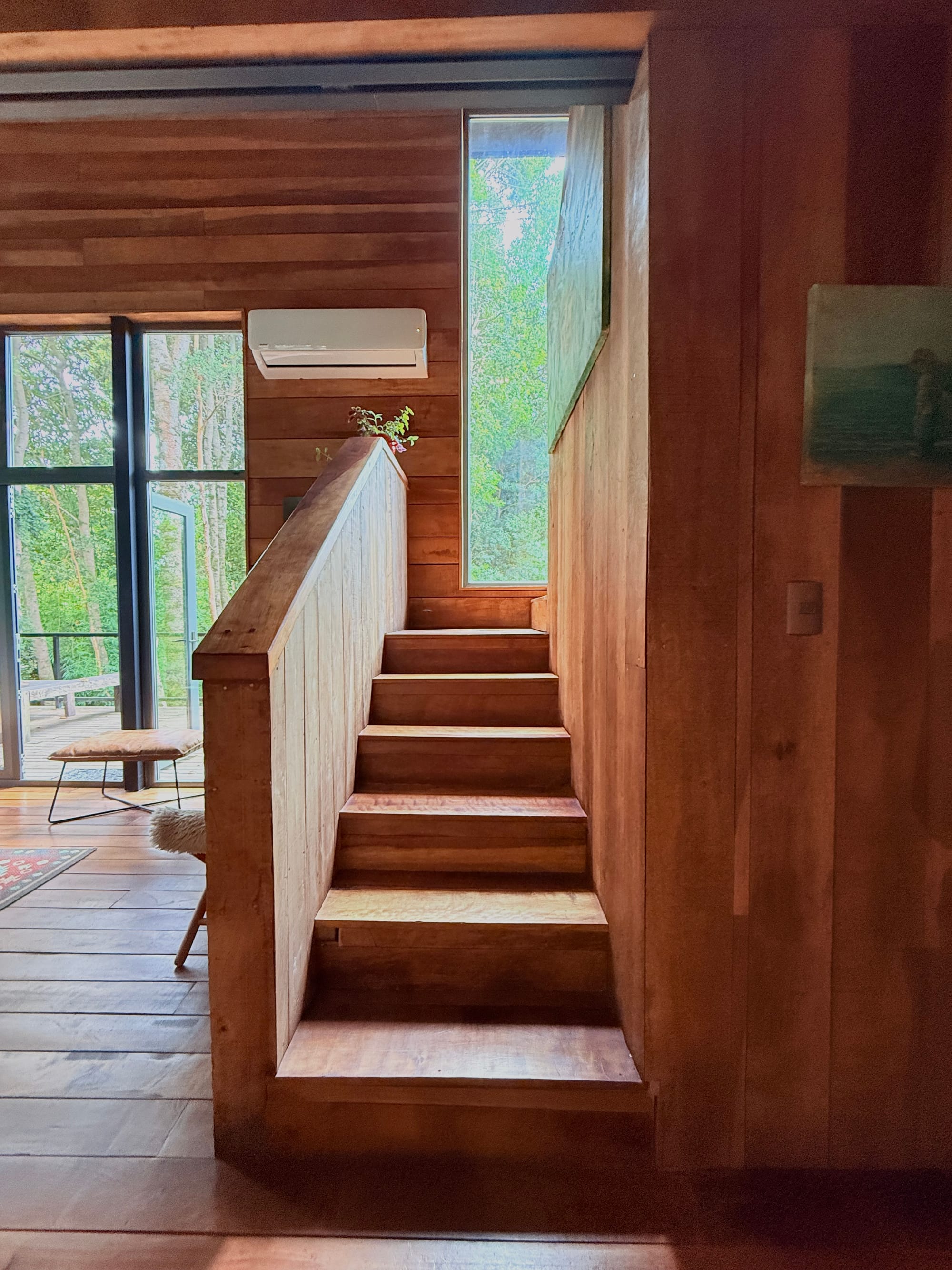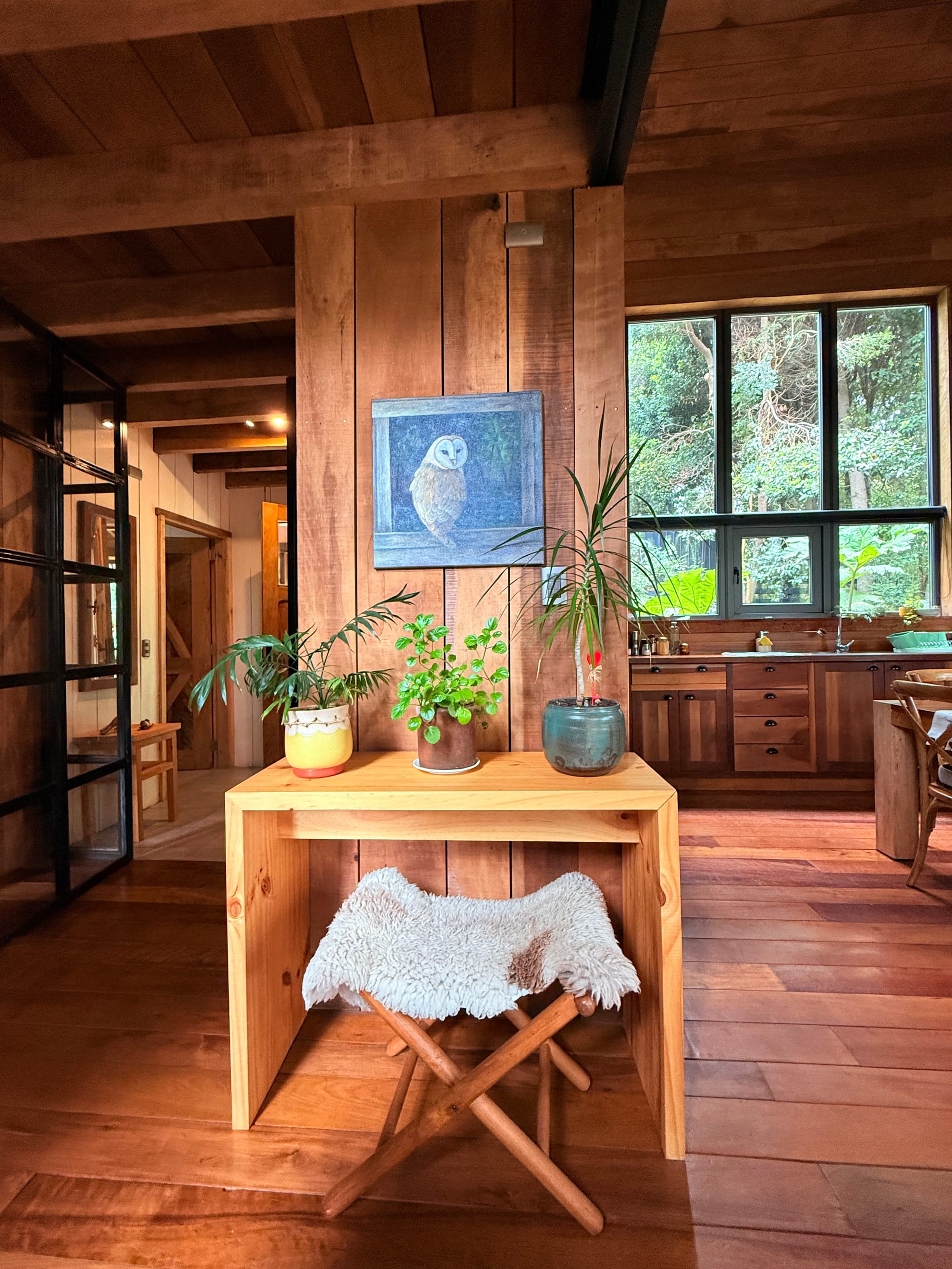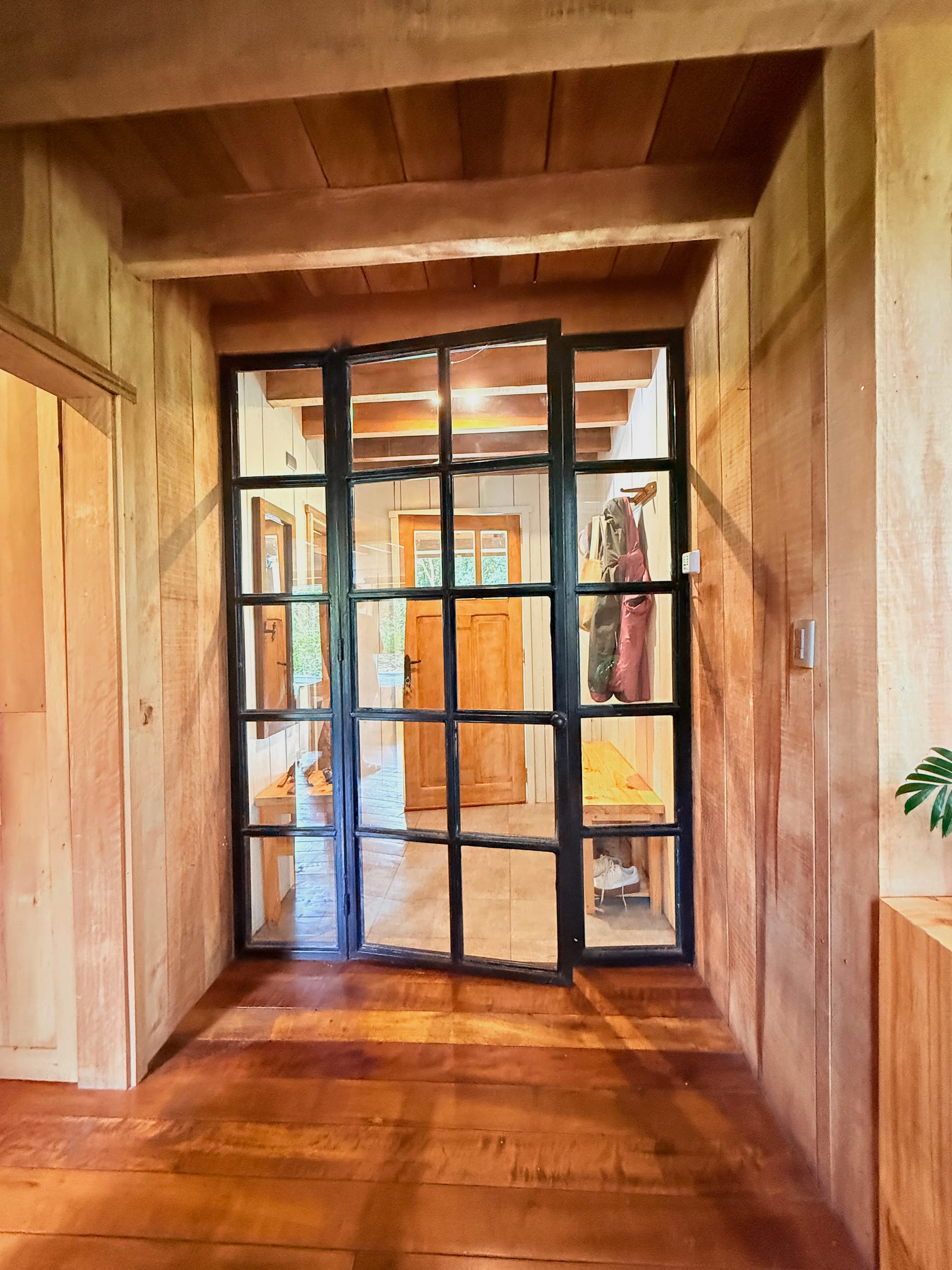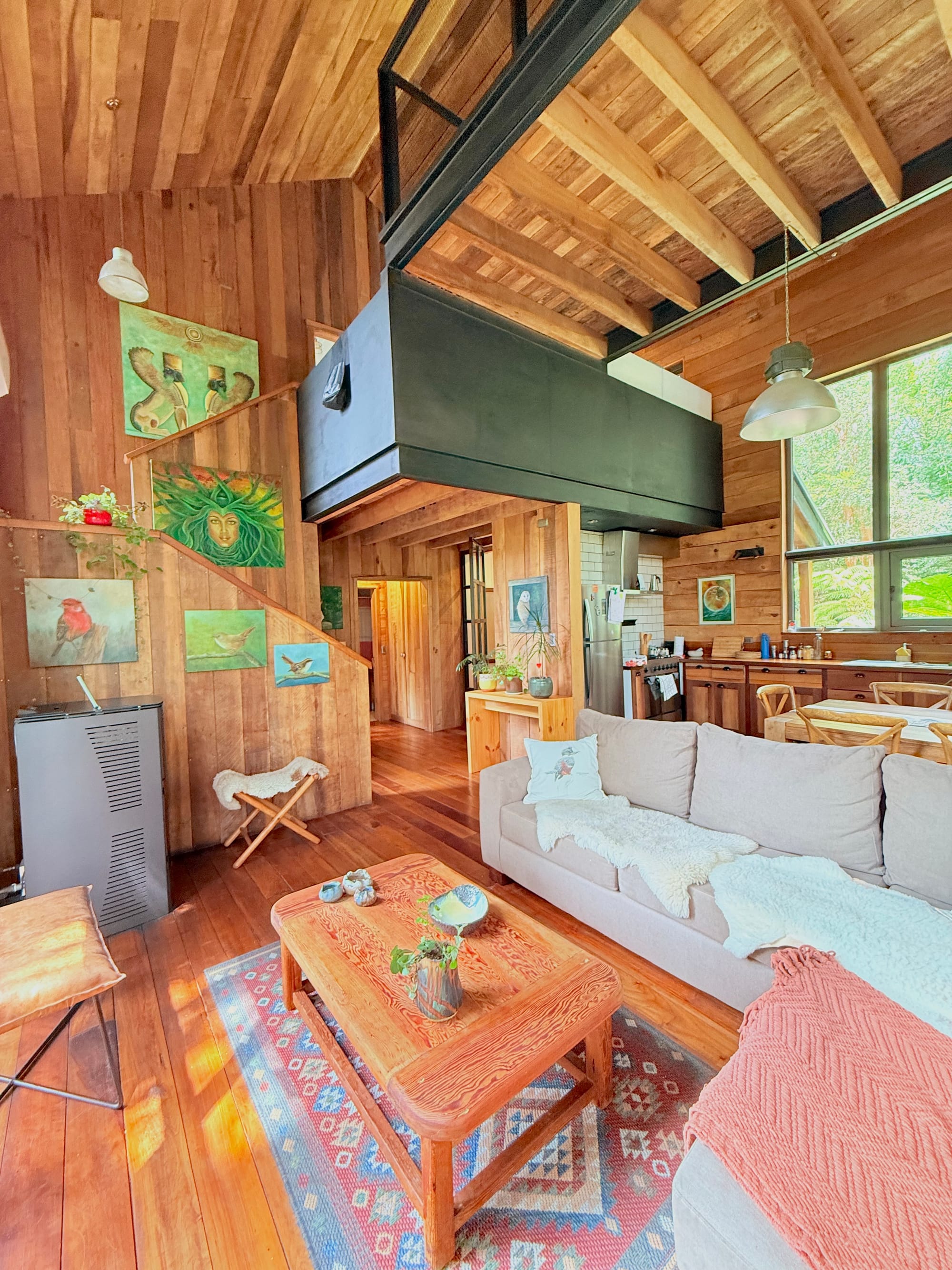 - La casa está construida con muchísima madera nativa, en su mayoría de laurel, y elementos de carácter local inspirada en los galpones del sur.