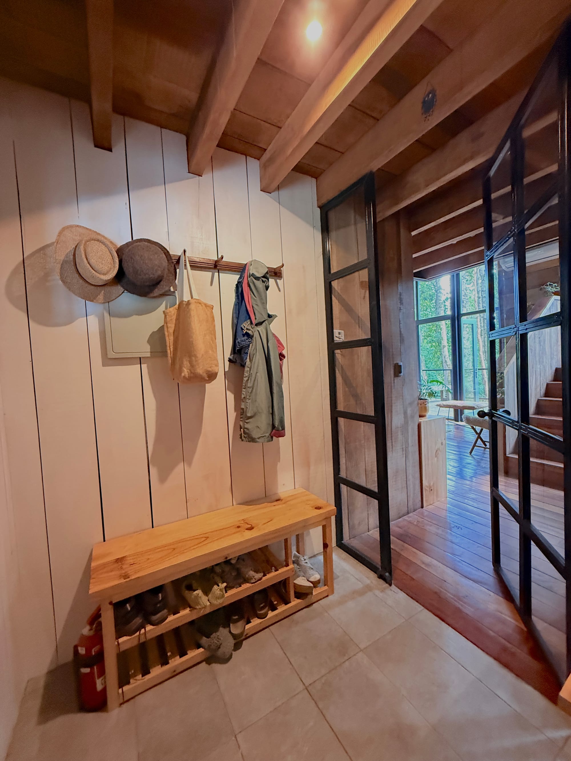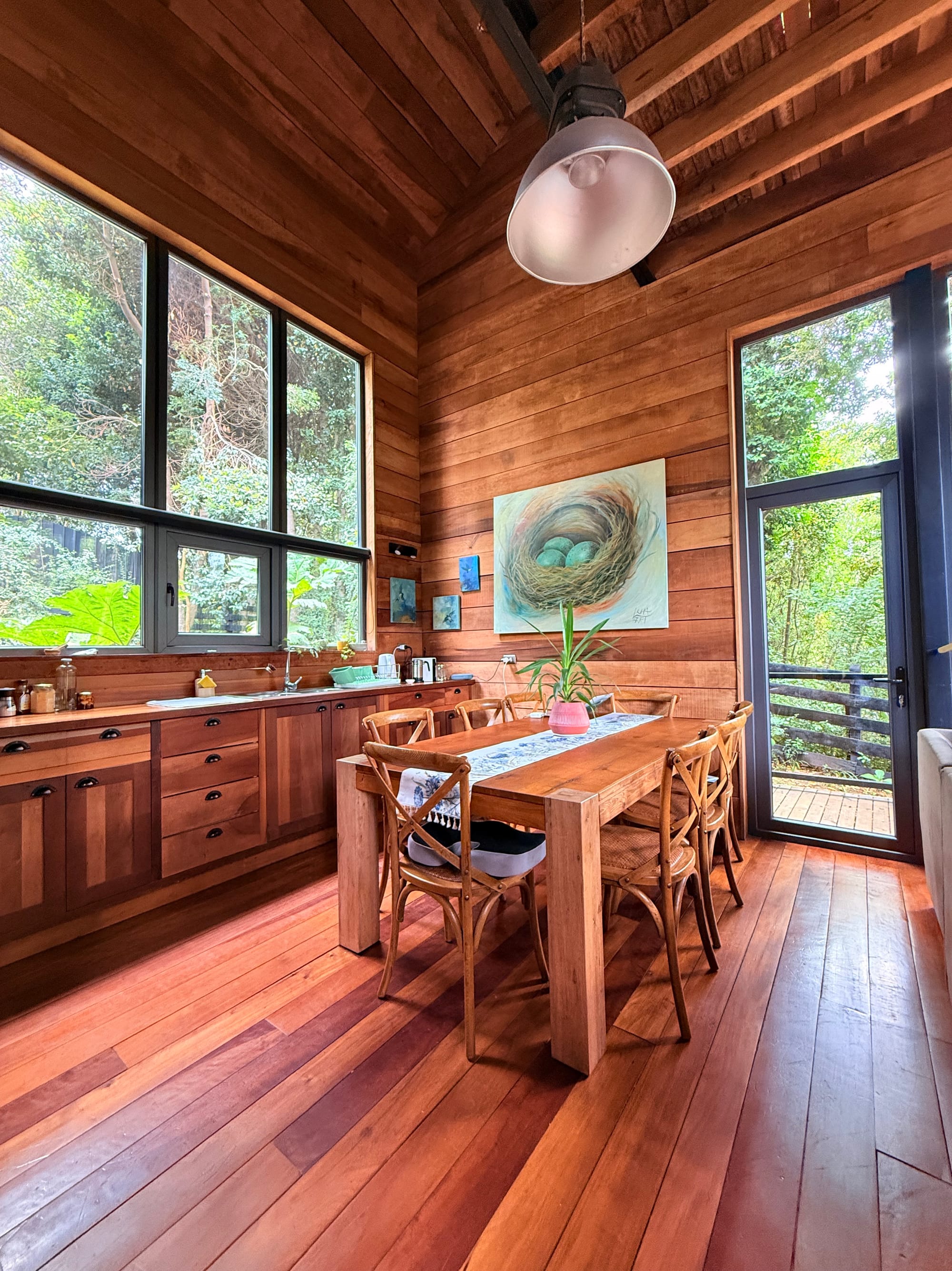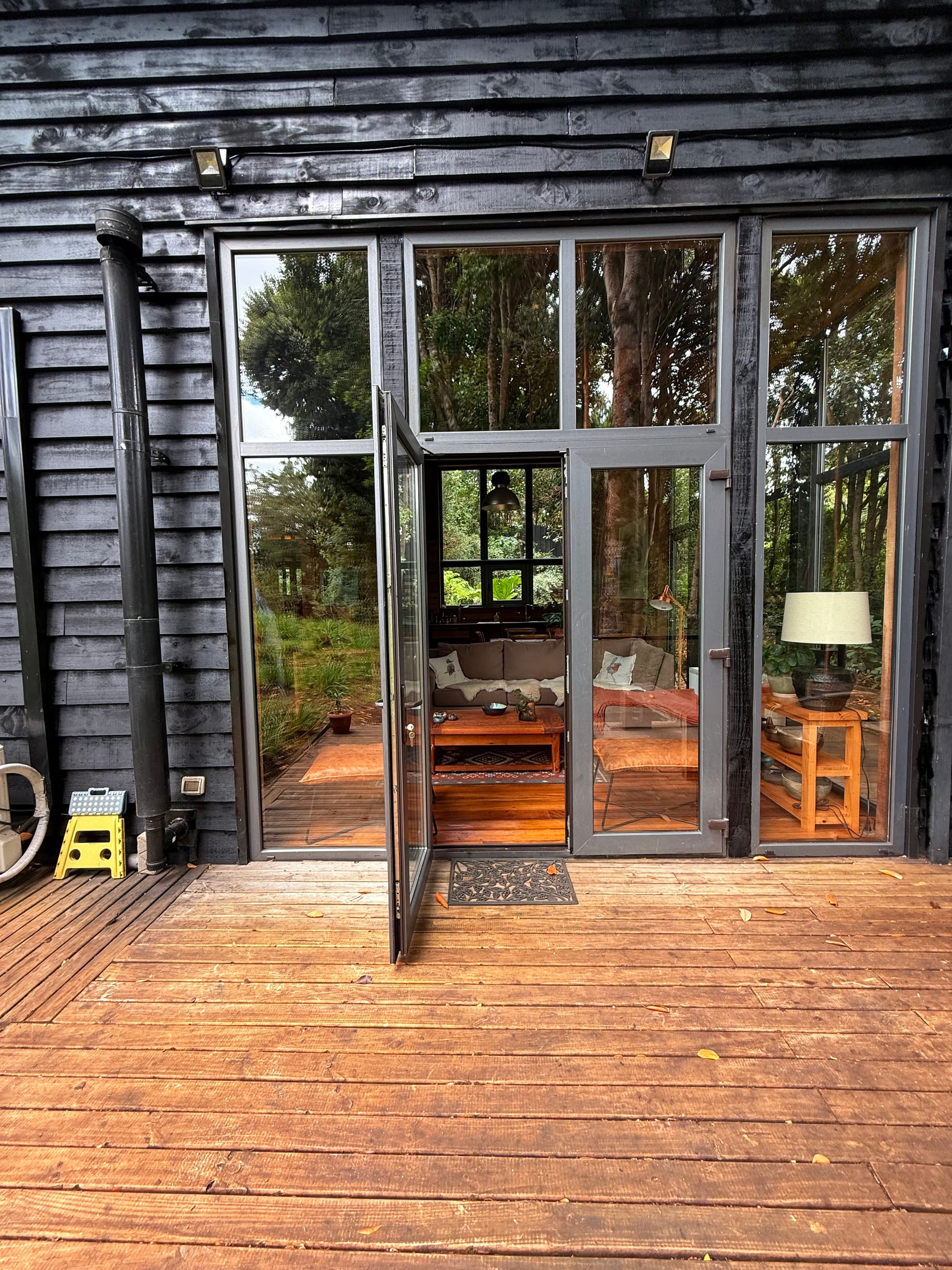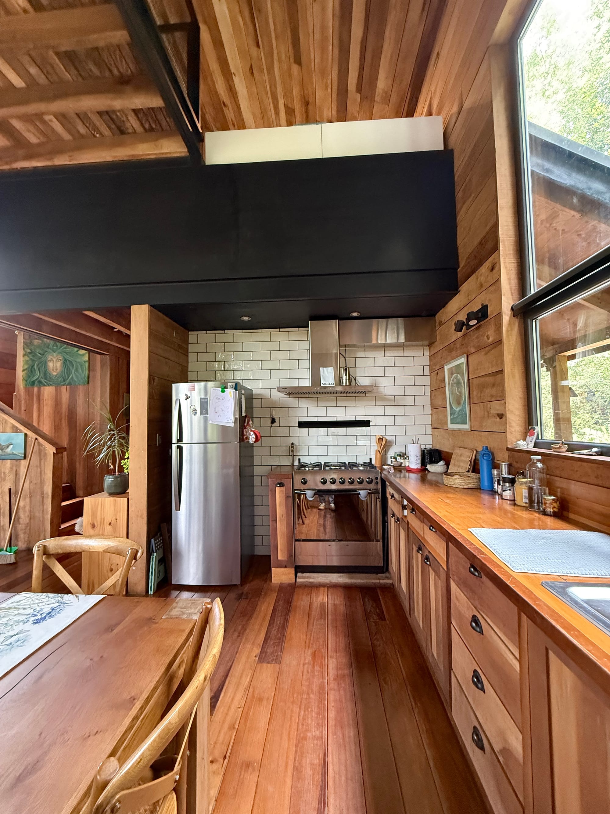 - La casa está construida con muchísima madera nativa, en su mayoría de laurel, y elementos de carácter local inspirada en los galpones del sur.