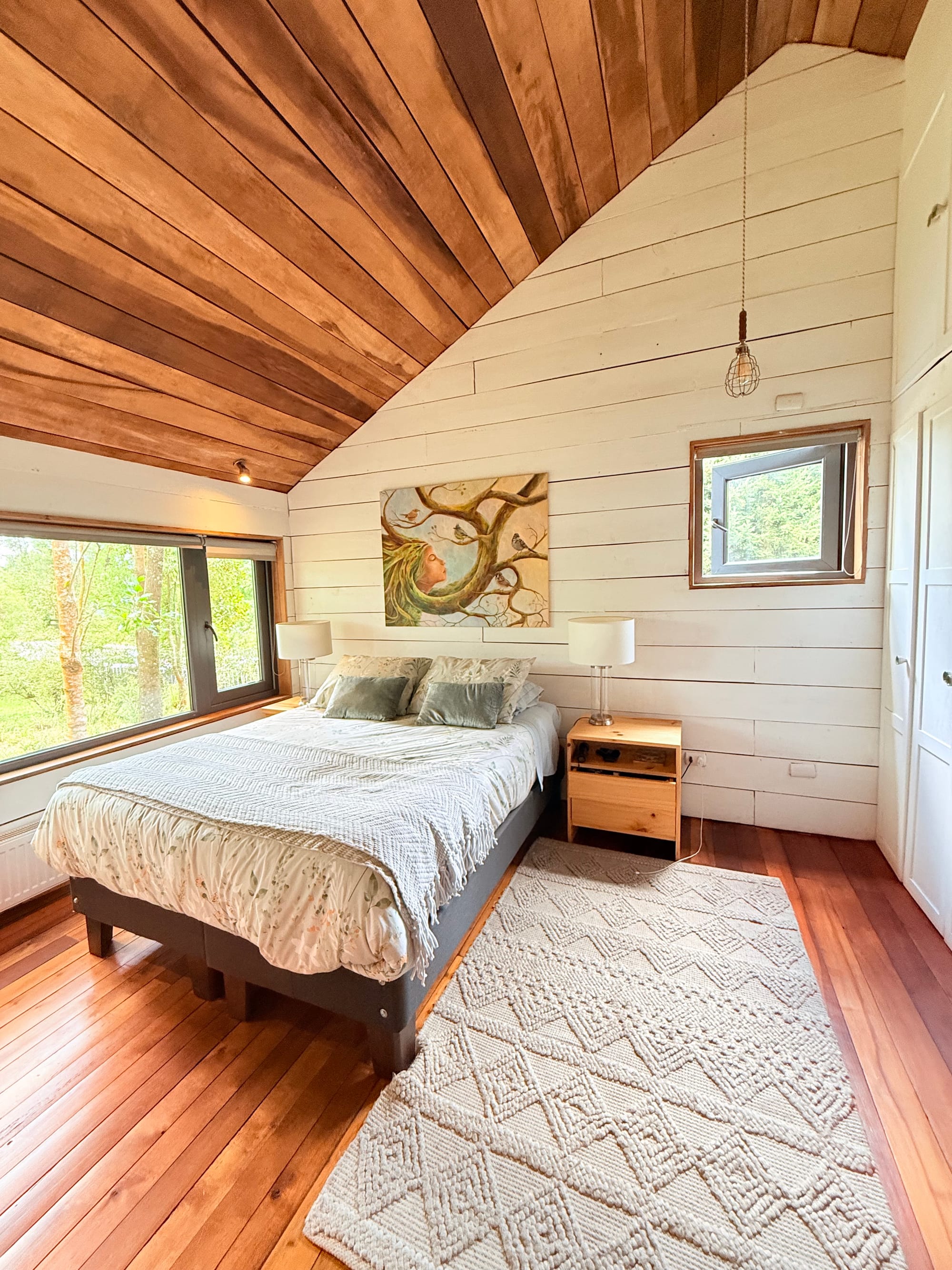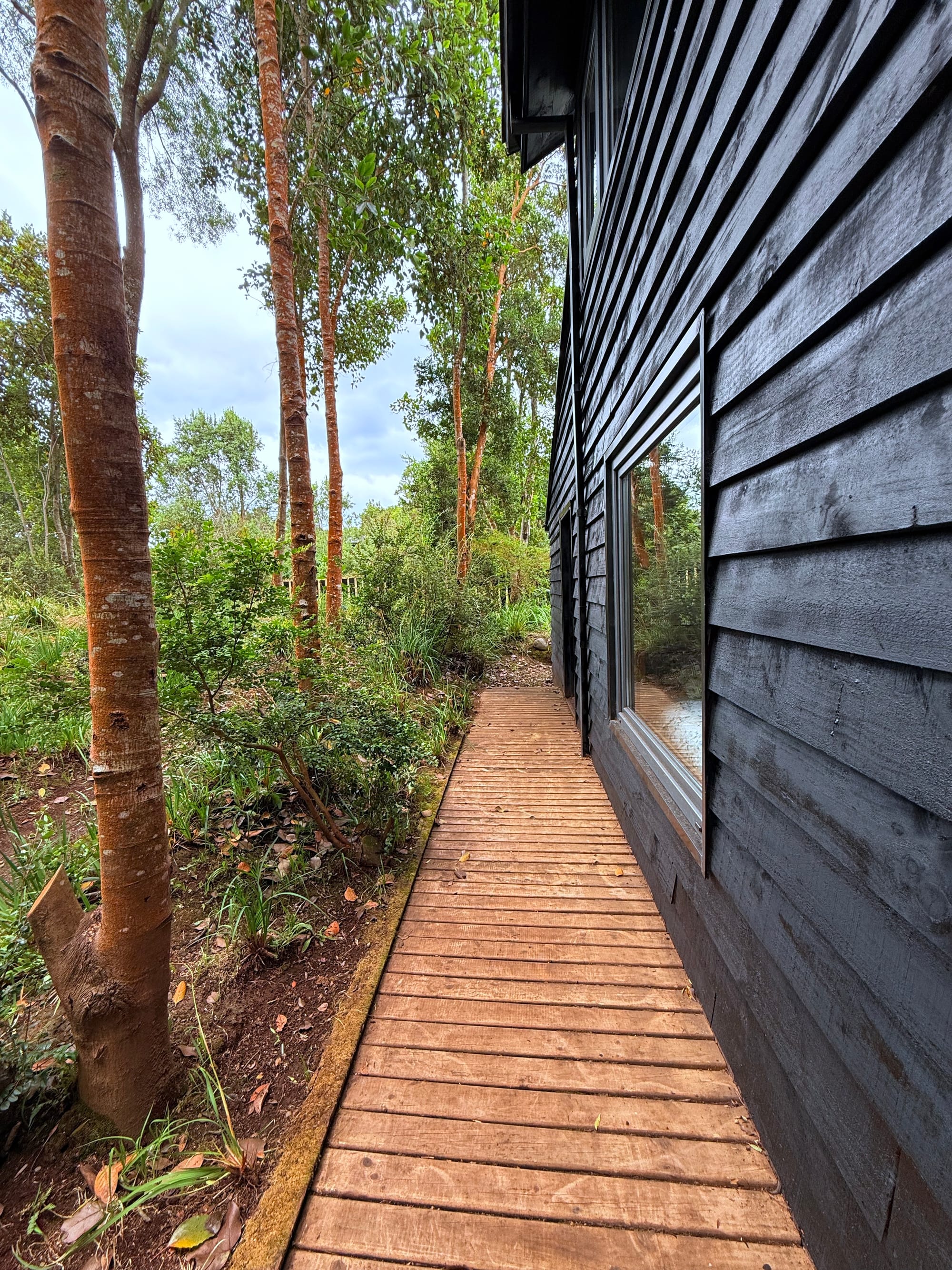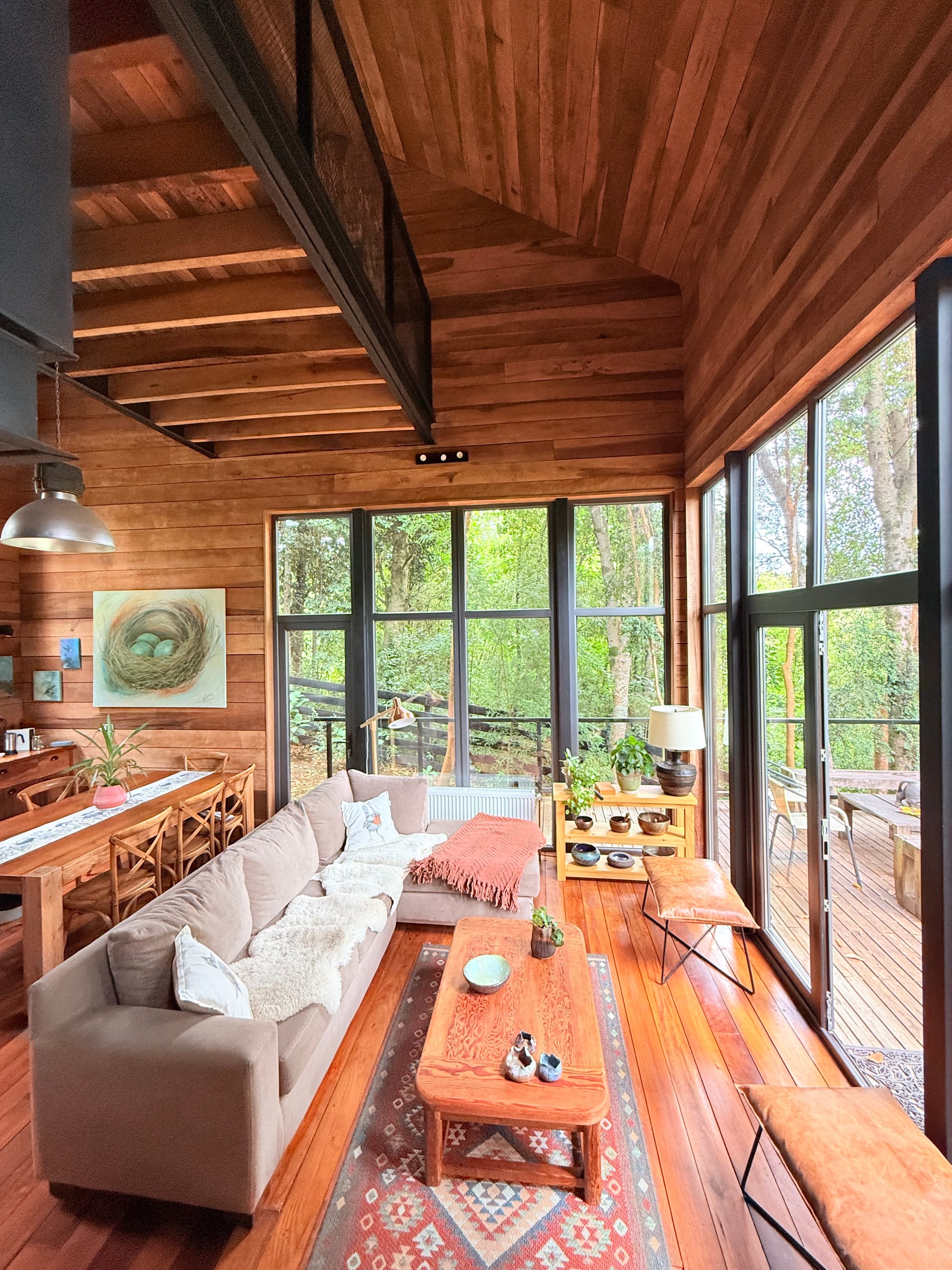 Con un diseño que encarna la sensibilidad y la reinterpretación contemporánea de nuestra arquitectura local, esta casa, pensada como una fusión armónica entre tradición y modernidad, celebra la calidez y textura de la madera nativa, que no solo viste sus muros y techos, sino que define la experiencia de cada espacio, invitando a respirar el sur desde dentro hacia fuera.