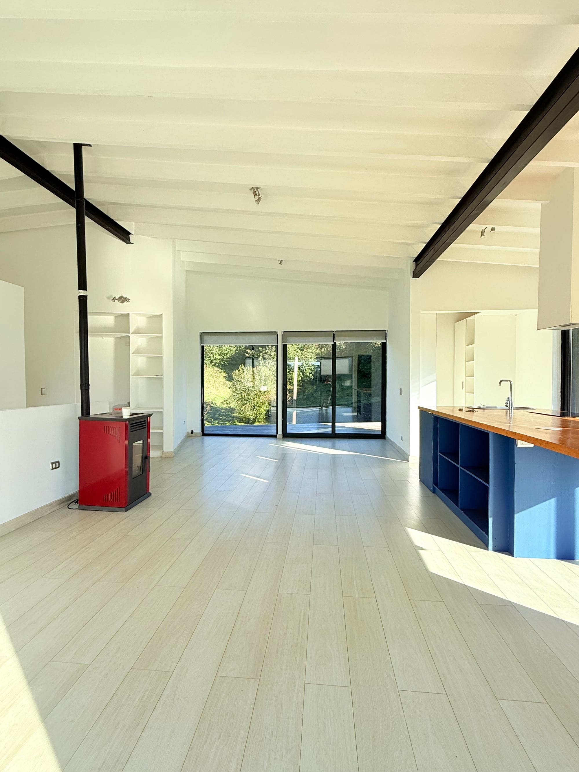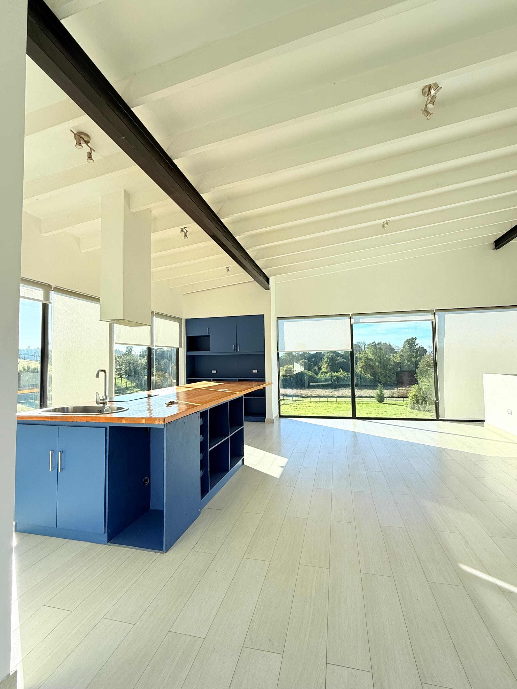 Fue construida hace tres años y está pensada para una familia pequeña, y por supuesto, sus mascotas 🐶😸. Tiene un living comedor con cocina integrados, tres dormitorios y dos baños, además de una bodega y medio baño con lavandería en el exterior.