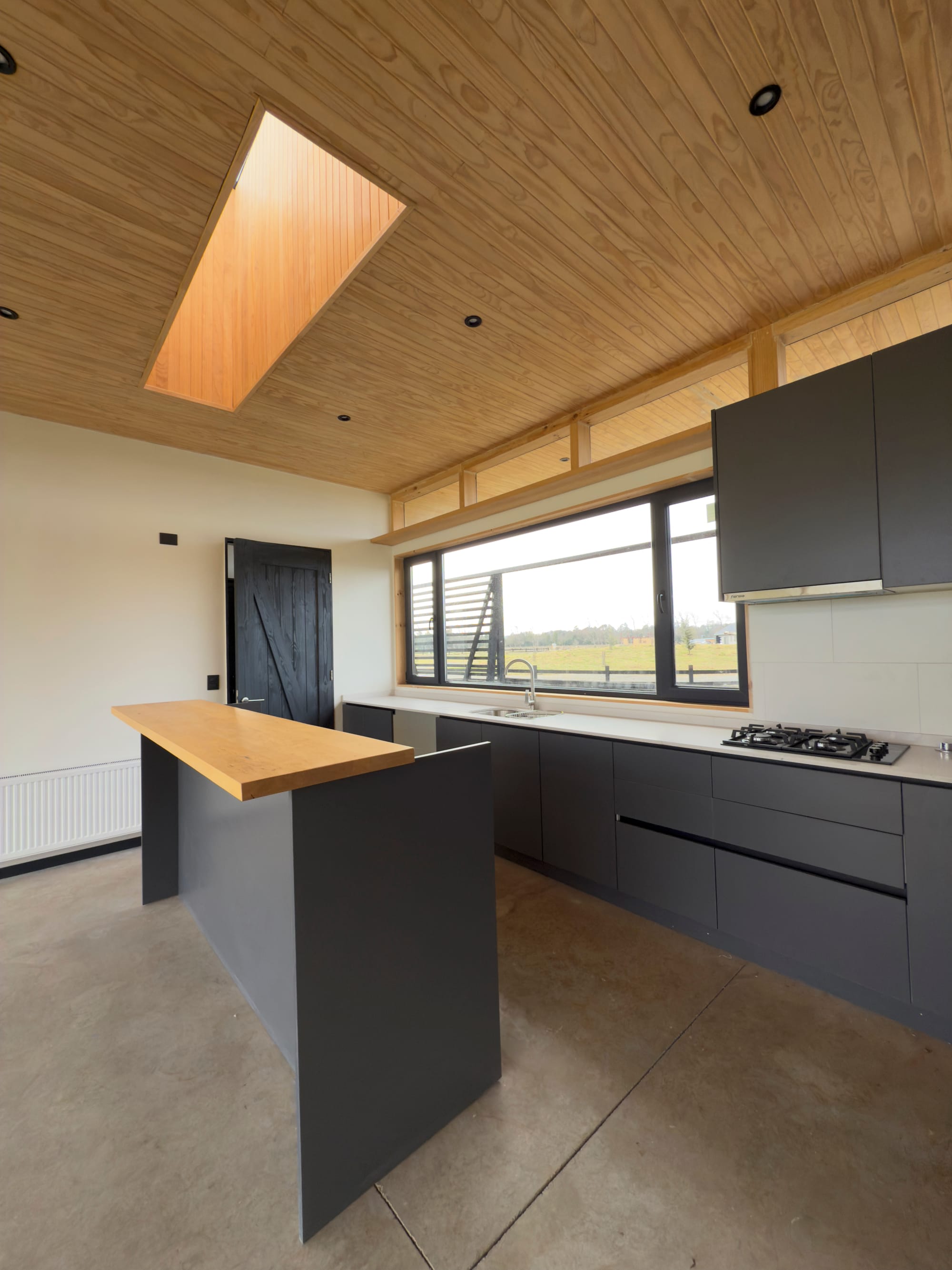 Sus espacios interiores son limpios, amplios y bañados de luz, pensados para vivir de forma cómoda, conectada y en equilibrio con el entorno. Es una casa linda (de esas que uno se imagina cuando sueña con vivir en el sur) donde cada detalle está pensado para hacer de lo cotidiano una experiencia plena y luminosa.