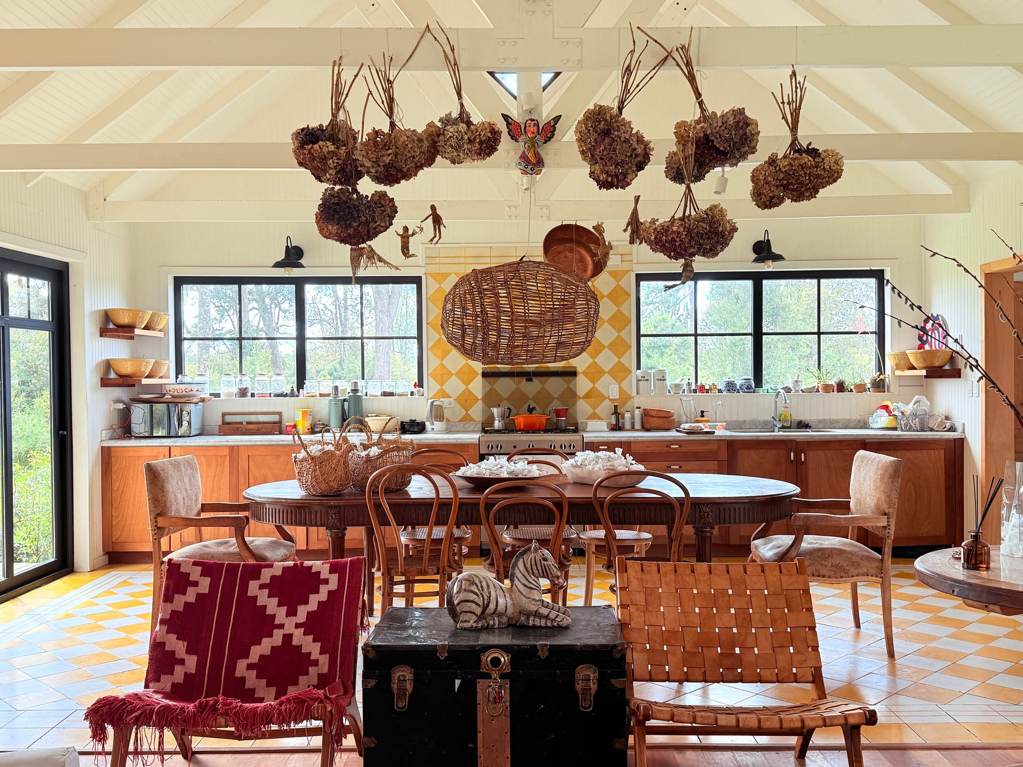 Su diseño revela un equilibrio perfecto entre lo rústico y lo elegante: pisos de roble que se disfrutan al andar, baldosas elegidas con cuidado que dan vida a cada espacio, y una arquitectura que se abre hacia la naturaleza, integrándola en el día a día.