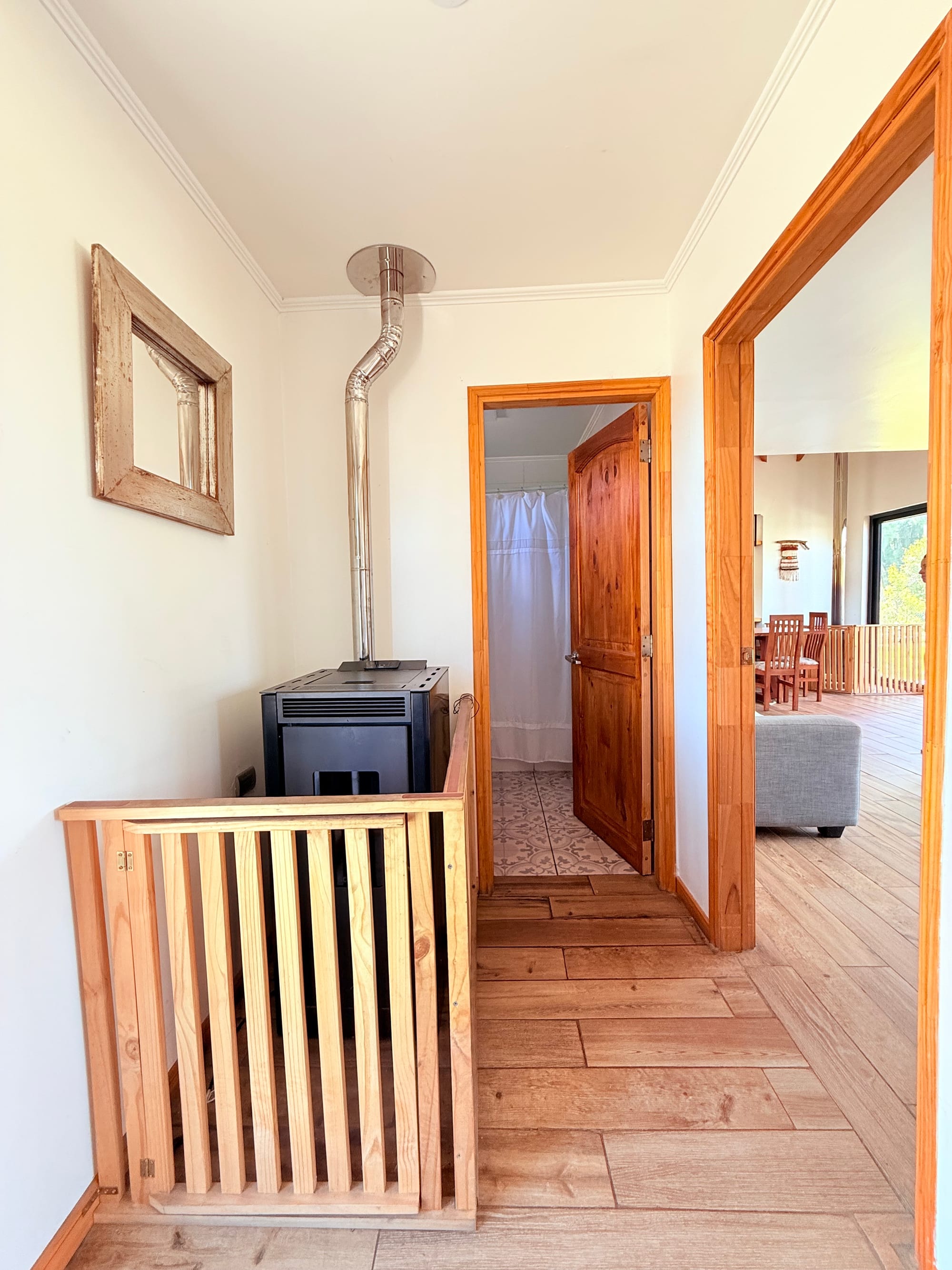 - Es una casa completamente aislada, con termopanel en sus ventanas y calefacción por combustión lenta y a pellet.