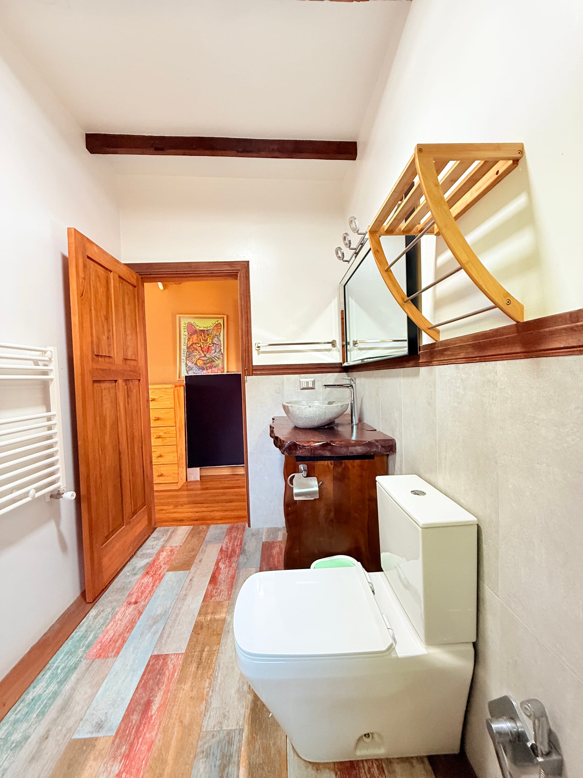Construida con materiales reutilizados de construcciones locales, con grandes vigas y madera de laurel, esta casa respira historia, calidez y ese carácter único que solo nace del cuidado de algo hecho con las manos.