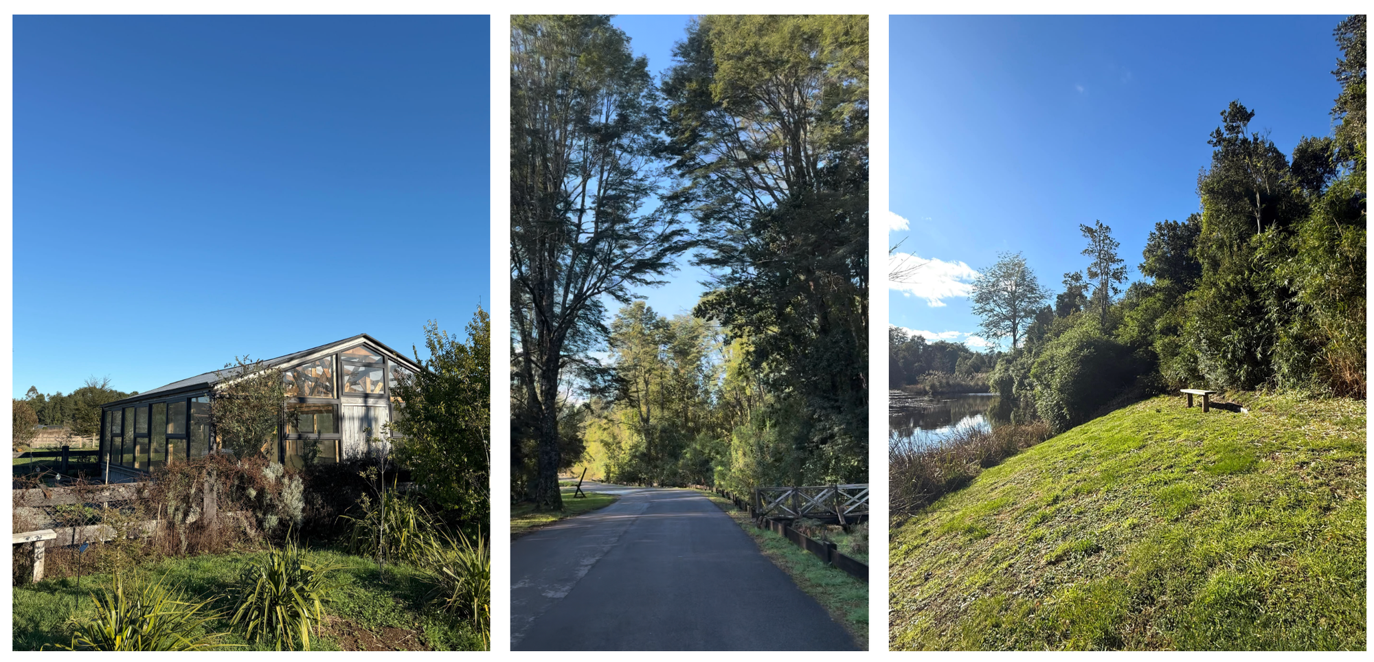 - El gran parque de 120 hectáreas de bosque nativo cuenta con dos senderos de trekking y una gran laguna ornamental.