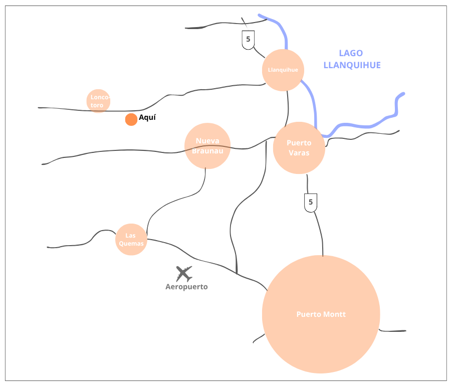 - A 28 minutos del aeropuerto El Tepual, 25 minutos de Puerto Varas y 18 minutos de Llanquihue.