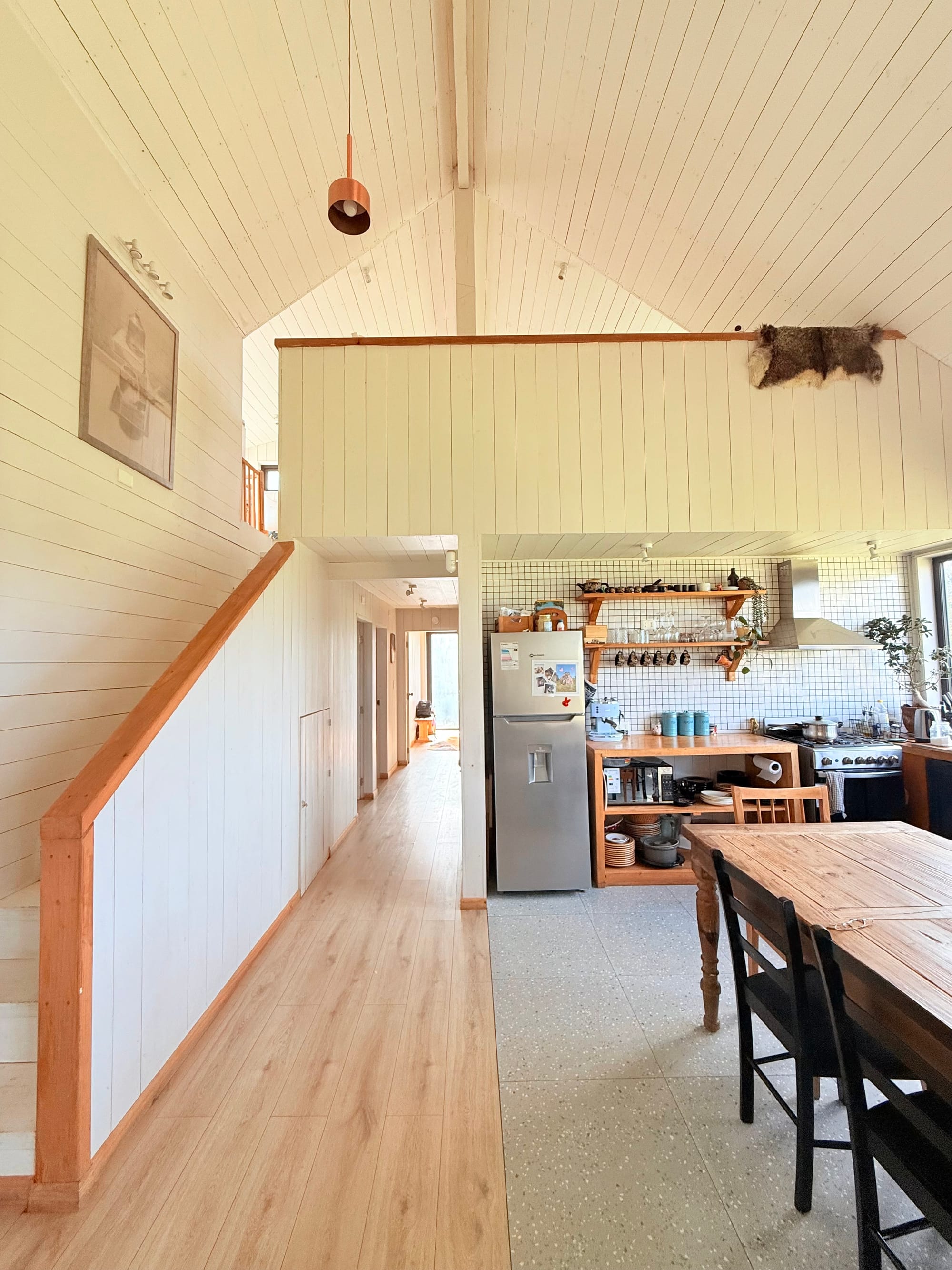Queríamos tener un espacio propio: para veranear, arrendar, o quizás, volver. Buscamos un sitio, lo compramos, y comenzamos diseñando una mini cabañita que terminó siendo esta casa. Fue un proceso muy especial: mi marido era mi cliente, mi contraparte. Y así nació la casa KDDK.
