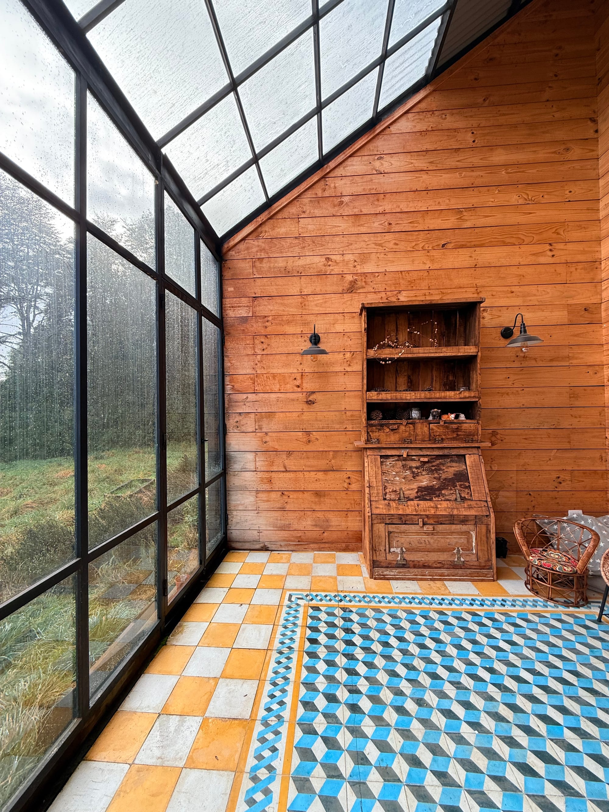 Elegimos un modelo de casa prediseñado que calzaba justo con el presupuesto que teníamos y empezamos a construir. Mientras tanto, arrendamos una cabaña muy chiquitita donde nos congelamos. Era una casa con cero aislación: cuando había viento las cortinas se levantaban por dentro de la cabaña.
