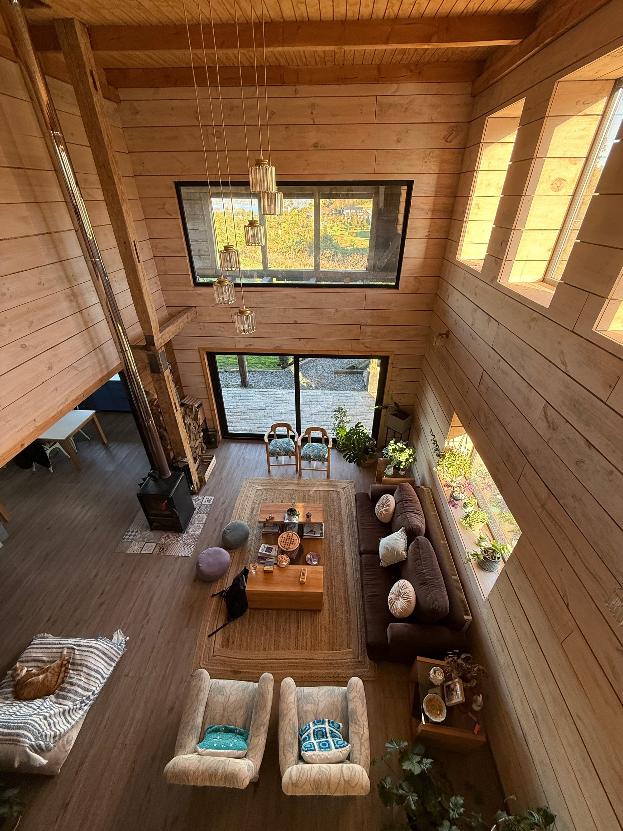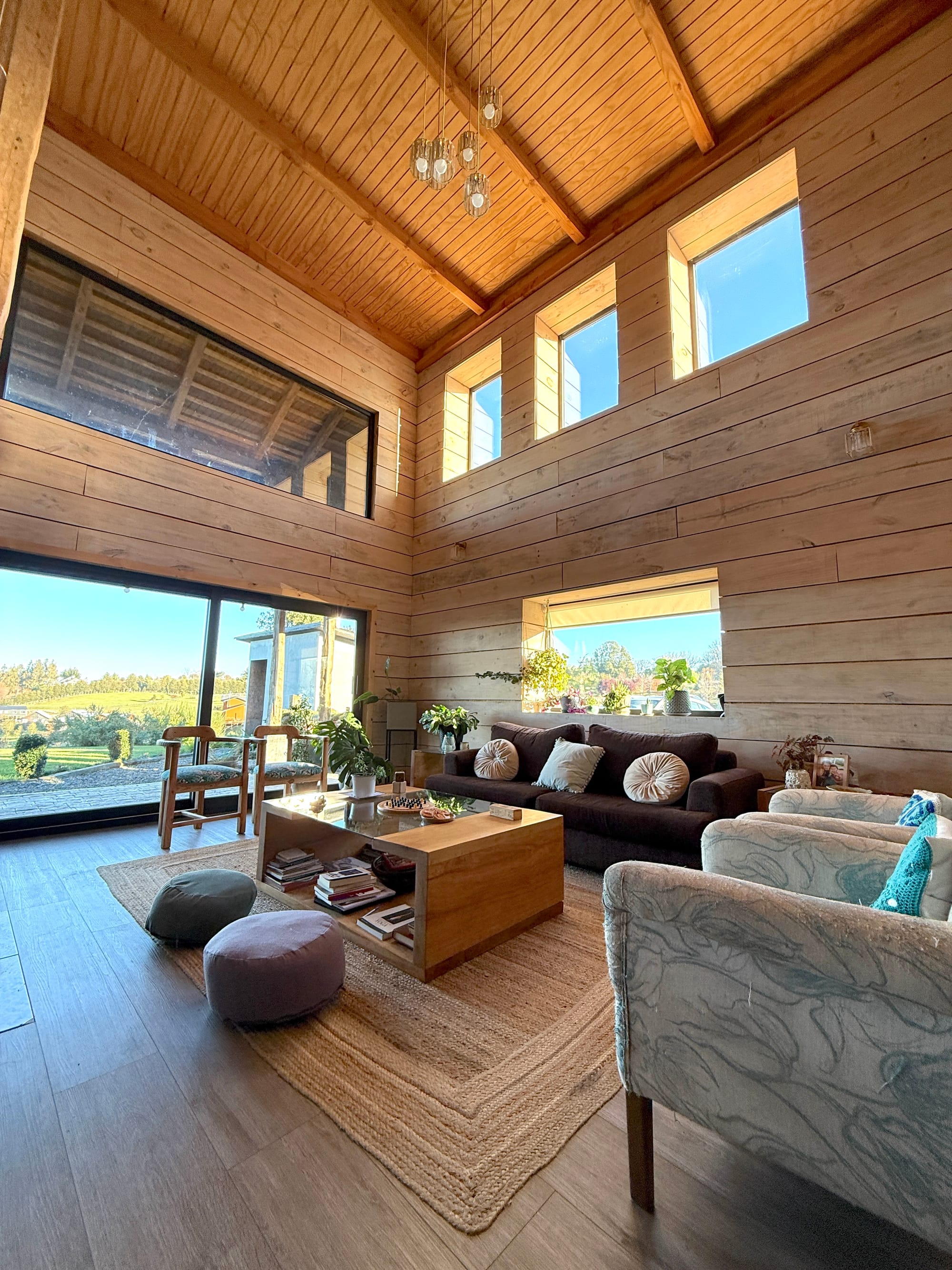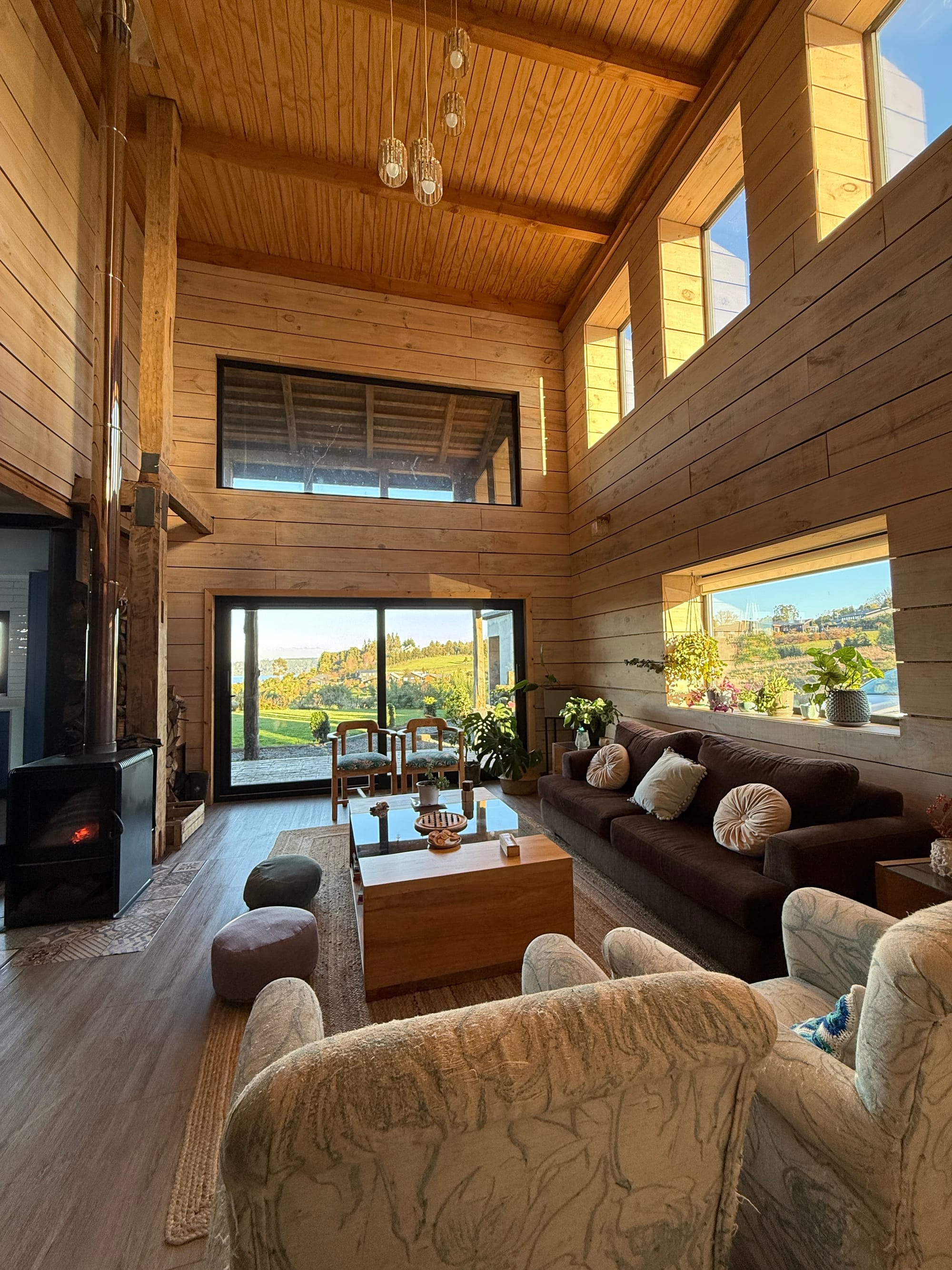 - Después viene la aislación, que marca la diferencia en el día a día. En nuestro caso usamos panel SIP, que resultó muy práctico y súper calentito. Y algo que no se puede olvidar: tener buenas ventanas.