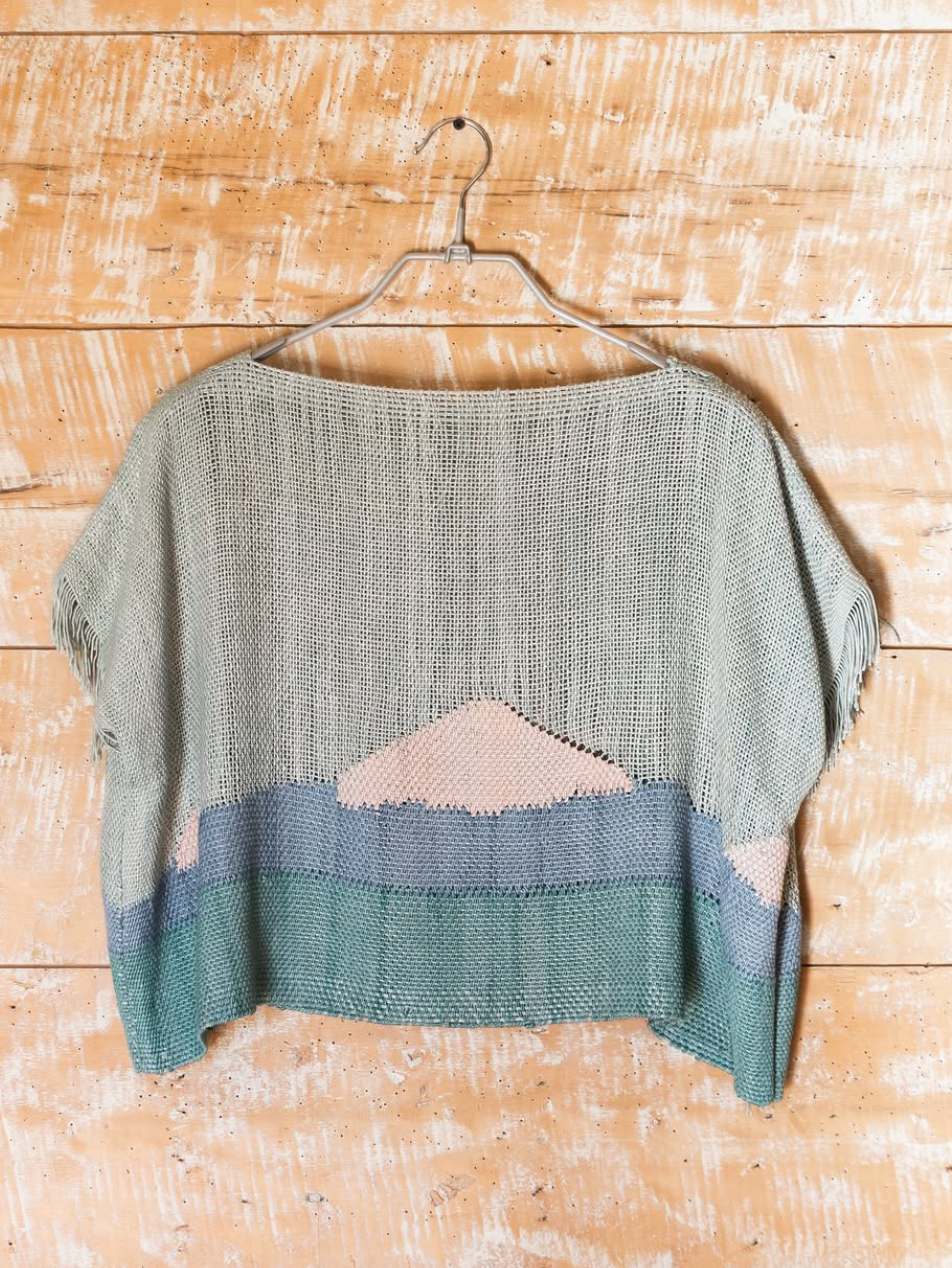 Después viene esa etapa previa al telar, donde ya tengo una idea más concreta de los colores: por ejemplo, cómo el volcán se tiñe de rosado durante la hora dorada, cómo cambian los tonos del cielo o cómo se refleja el agua en el lago en un día calmo. En estos días, eso me mueve profundamente.