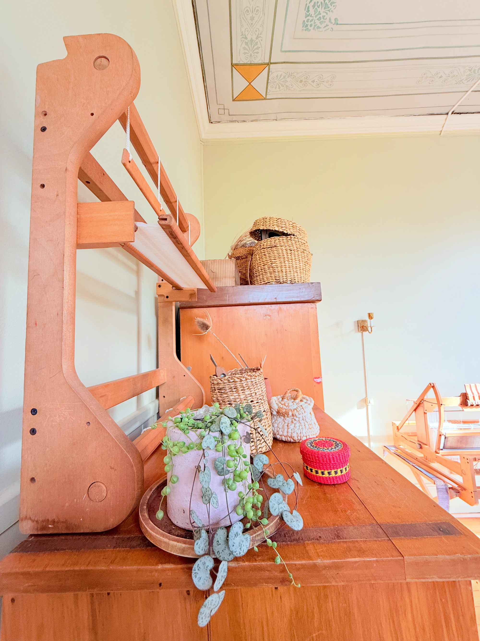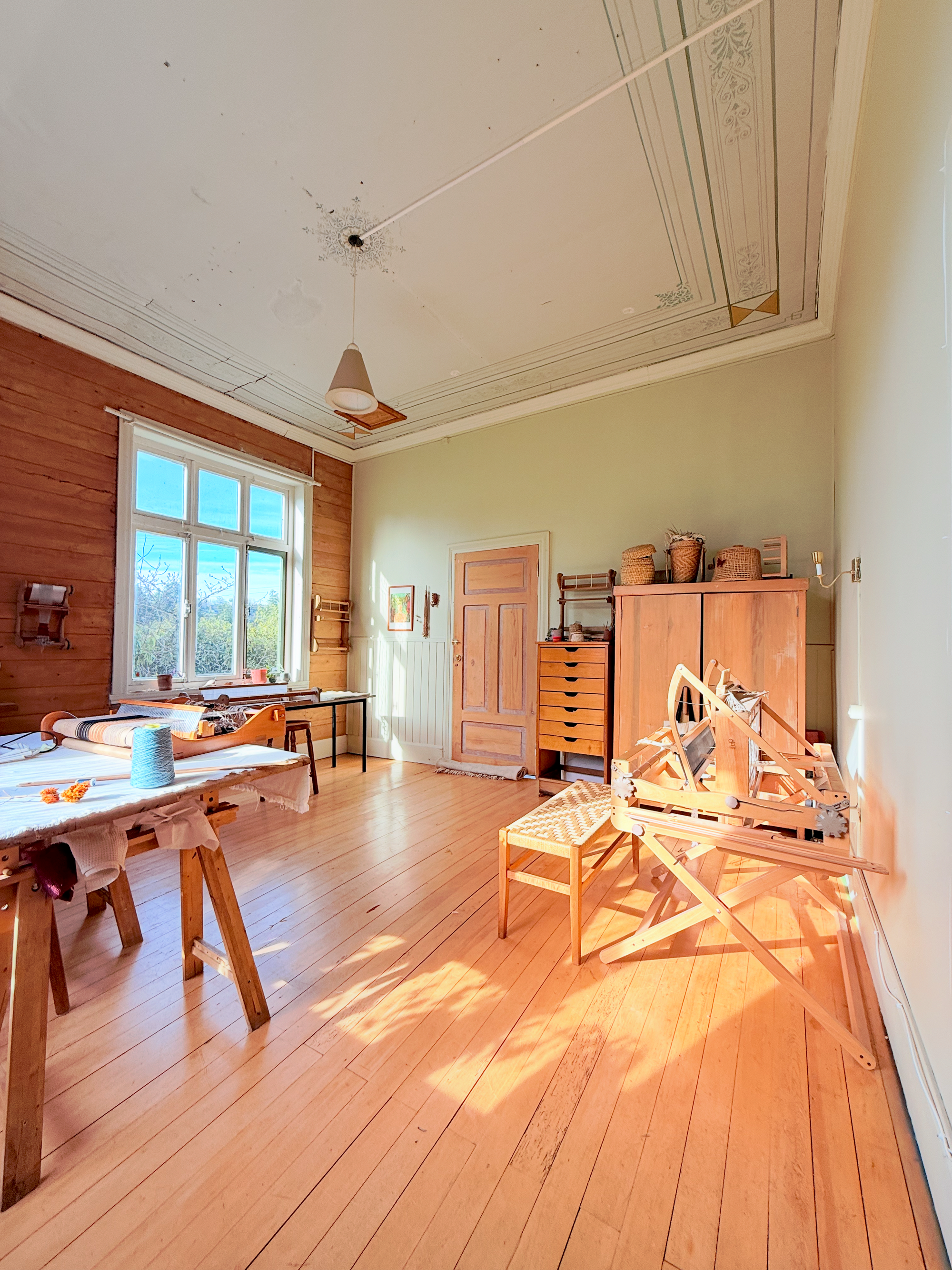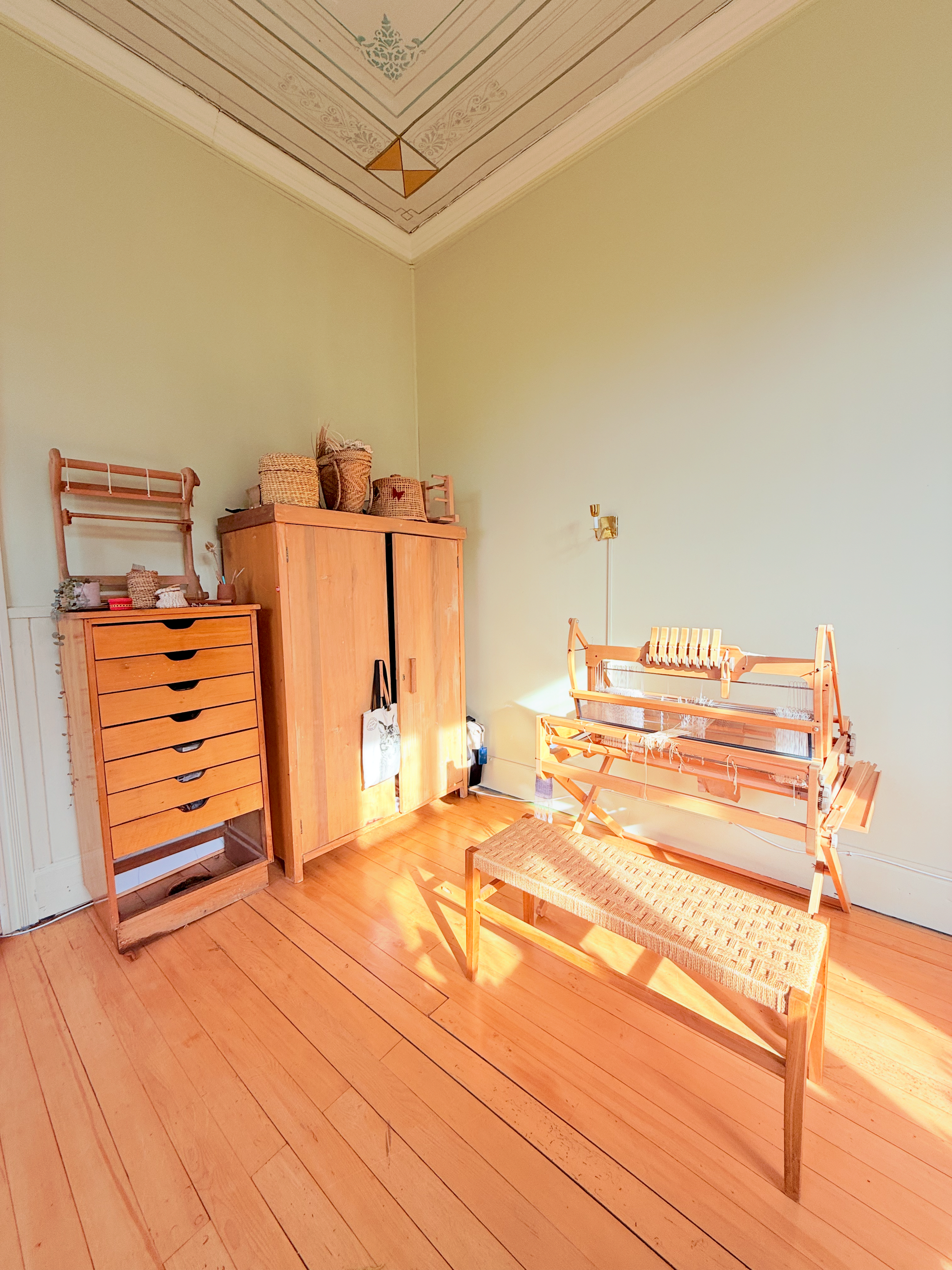 Este año cumplo 20 años como tejedora, y desde siempre he hecho clases en mi casa-taller. Me gusta que mi hogar también sea mi taller. Es diferente recibir a las alumnas en tu propio espacio, mostrarles tu trabajo, tener las herramientas a mano, ofrecerles ese rincón que uno habita con amor. Hay algo muy lindo en estar en el taller de la profe.