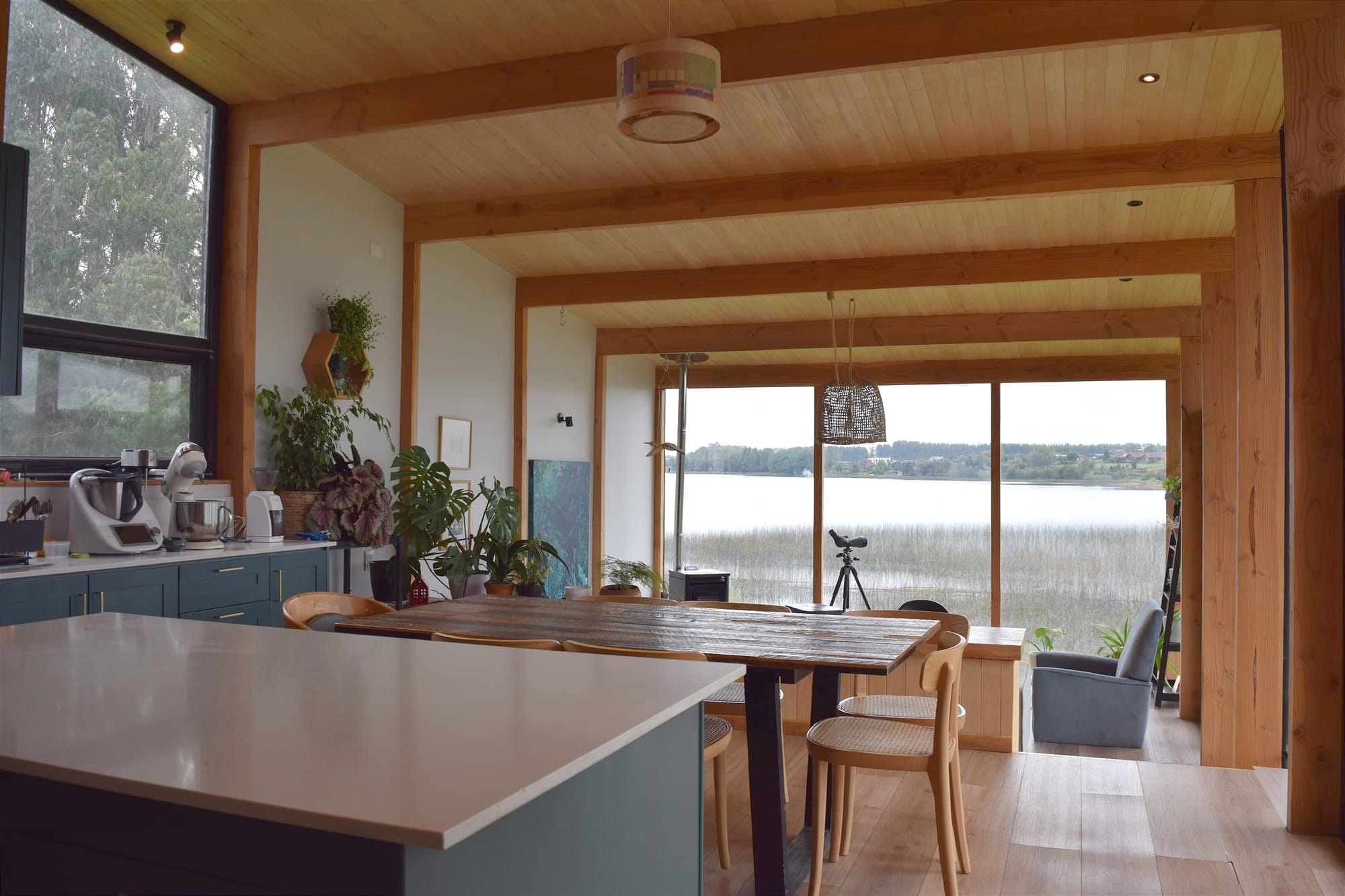 Más tarde, para la pandemia, se abrió la posibilidad de venirnos ya que pudimos teletrabajar, y estuvimos acá varias semanas para escapar del encierro. Esto nos hizo darnos cuenta que podíamos vivir en el sur y así fue: en tres meses teníamos el proyecto de arquitectura y nos lanzamos a construir.